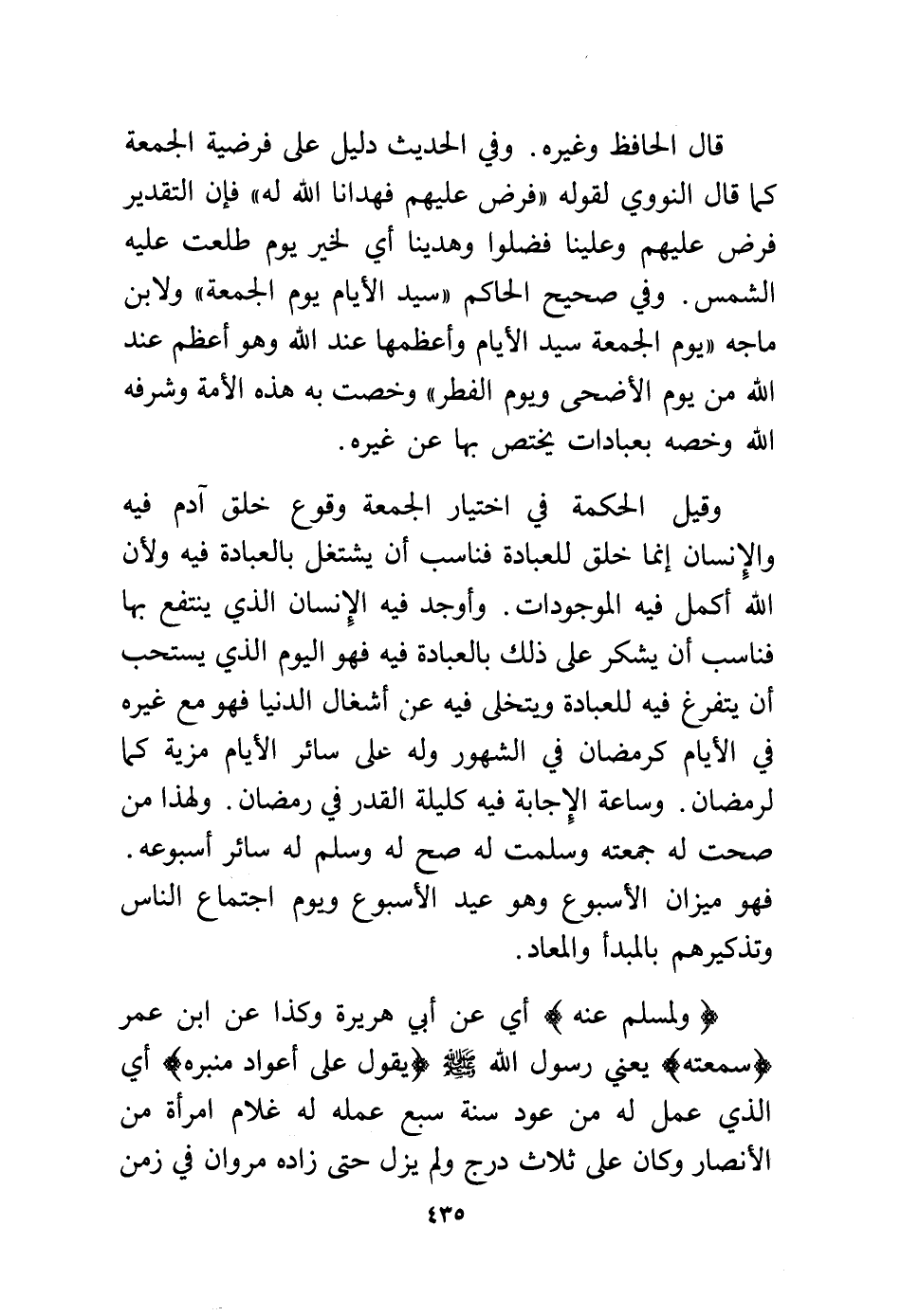 قال الحافظ وغيره. وفي الحديث دليل على فرضية الجمعة كما قال النووي لقوله "فرض عليهم فهدانا الله له" فإن التقدير فرض عليهم وعلينا فضلوا وهدينا أي لخير يوم طلعت عليه الشمس. وفي صحيح الحاكم "سيد الأيام يوم الجمعة" ولابن ماجه "يوم الجمعة سيد الأيام وأعظمها عند الله وهو أعظم عند الله من يوم الأضحى ويوم الفطر" وخصت به هذه الأمة وشرفه الله وخصه بعبادات يختص بها عن غيره.