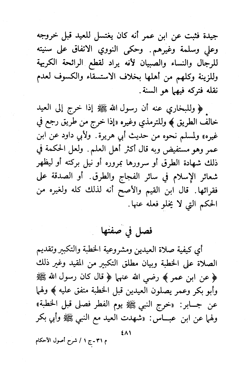 أي كيفية صلاة العيدين ومشروعية الخطبة والتكبير وتقديم الصلاة على الخطبة وبيان مطلق التكبير من المقيد وغير ذلك (عن ابن عمر) رضي الله عنهما (قال كان رسول الله - صلى الله عليه وسلم - وأبو بكر وعمر يصلون العيدين قبل الخطبة متفق عليه) ولهما عن جابر: "خرج النبي - صلى الله عليه وسلم - يوم الفطر فصلى قبل الخطبة"