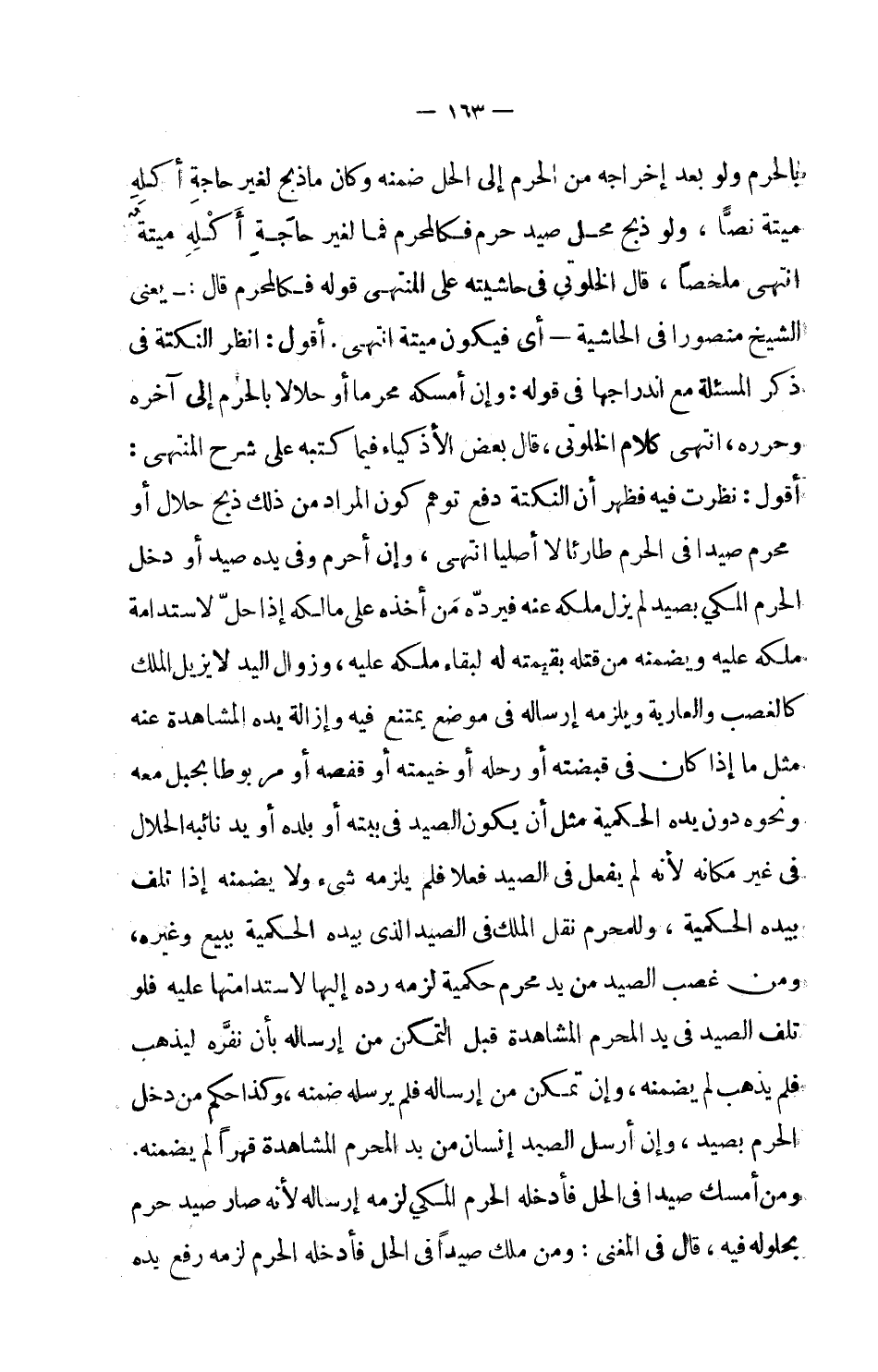 قال بعض الأذكياء فيما كتبه على شرح المنتهى. أقول: نظرت فيه فظهر أن النكتة دفع توهم كون المراد من ذلك ذبح حلال أو محرم صيداً الحرم طارئاً لا أصليا انتهى.
