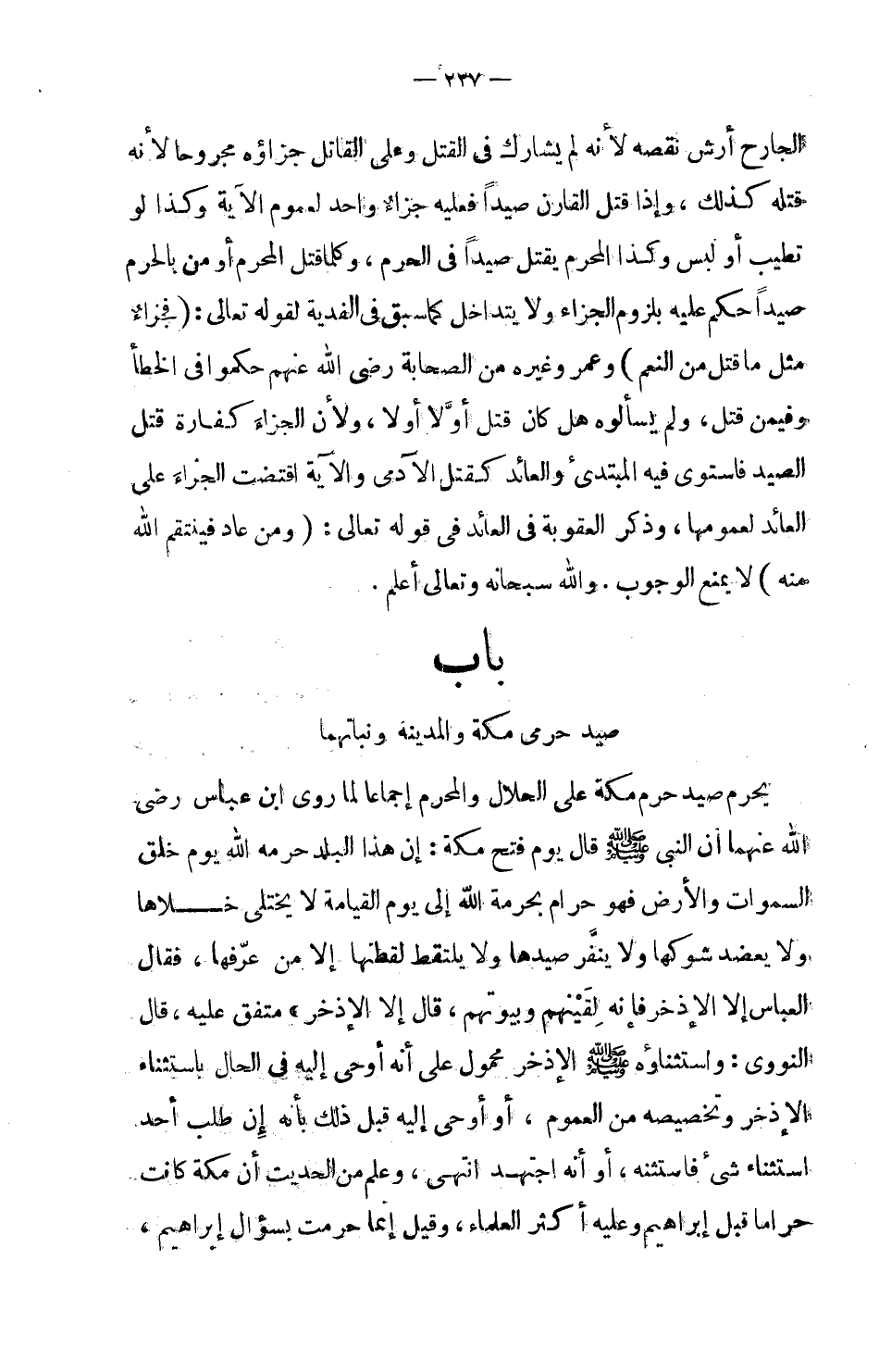-- باب: صيد حرمي مكة والمدينة ونباتهما:
