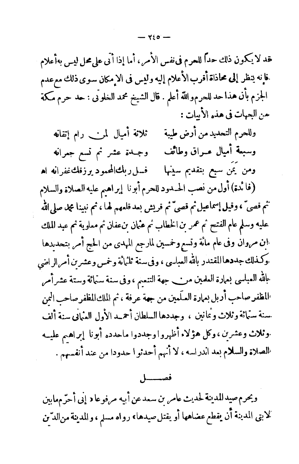 وللحرم التحديد من أرض طيبة ... ثلاثة أميال لمن رام إتقانه.