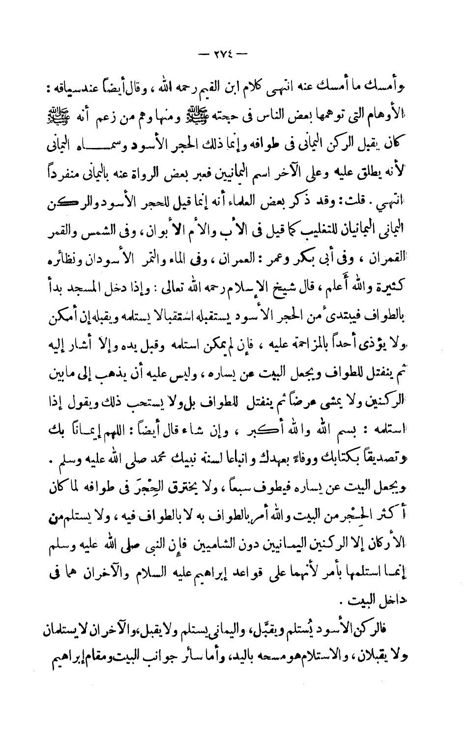 وأمسك ما أمسك عنه انتهى كلام ابن القيم رحمه الله، وقال أيضاً عند سياقه: الأوهام التي توهمها بعض الناس في حجته صلى الله عليه وسلم ومنها وهم من زعم أنه صلى الله عليه وسلم كان يقبل الركن اليماني في طوافه وإنما ذلك الحجر الأسود وسماه اليماني لأنه يطلق عليه وعلى الآخر اسم اليمانيين فعبر بعض الرواة عنه باليماني منفرداً انتهى.