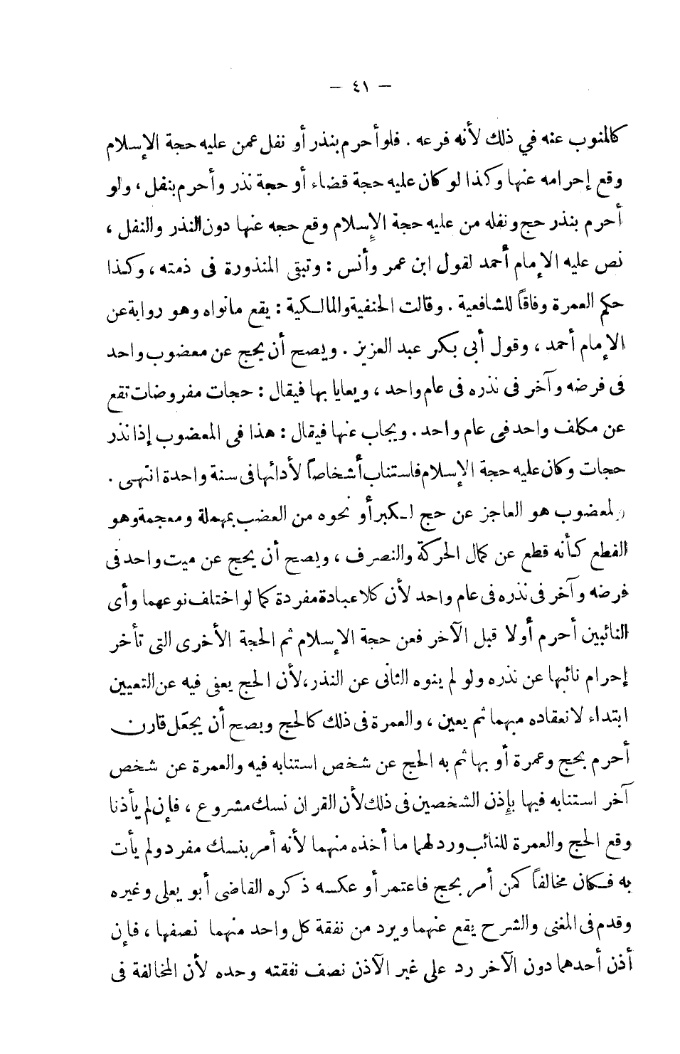 والمعضوب هو العاجز عن حج لكبر أو نحوه من العضب بمهملة ومعجمة وهو القطع كأنه قطع عن كمال الحركة والتصرف، ويصح أن يحج عن ميت واحد في فرضه وآخر في نذره في عام واحد لأن كلا عبادة مفردة كما لو اختلف نوعهما وأي النائبين أحرم أو لا قبل الآخر فعن حجة الإسلام ثم الحجة الأخرى التي تأخر إحرام نائبها عن نذره ولو لم ينوه الثاني عن النذر، لأن الحج يعفى فيه عن التعيين ابتداء لانعقاده مبهما ثم يعين، والعمرة في ذلك كالحج ويصح أن يجعل قارن أحرم بحج وعمرة أو بها ثم به الحج عن شخص استنابه فيه والعمرة عن شخص آخر استنابه فيها بإذن الشخصين في ذلك لأن القران نسك مشروع، فإن لم يأذنا وقع الحج والعمرة للنائب ورد لهما ما أخذه منهما لأنه أمر بنسك مفرد ولم يأت به فكان مخالفاً كمن أمر بحج فاعتمر أو عكسه ذكره القاضي أبو يعلي وغيره وقدم في المغني والشرح يقع عنهما ويرد من نفقة كل واحد منهما نصفها، فإن أذن أحدهما دون الآخر رد على غير الآذن نصف نفقته وحده لأن المخالفة
