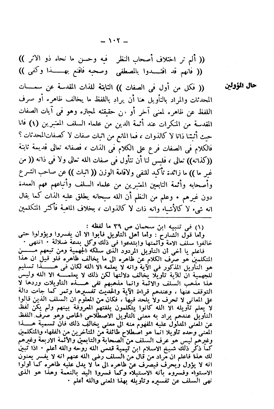 ((فَكُلُّ مَنْ أَوَّلَ فِي الصِّفَاتِ ... كَذَاتِهِ مِنْ غَيْرِ مَا إِثْبَاتِ))