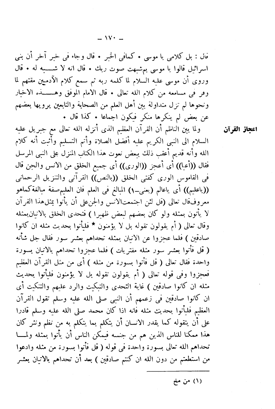 فَإِنَّهُ إِذَا كَانَ مُحَمَّدٌ - صَلَّى اللَّهُ عَلَيْهِ وَسَلَّمَ - قَادِرًا عَلَى أَنَّ يَتَقَوَّلَهُ كَمَا يَقْدِرُ الْإِنْسَانُ أَنْ يَتَكَلَّمَ بِمَا يَتَكَلَّمُ بِهِ مِنْ نَظْمٍ وَنَثْرٍ كَانَ هَذَا مُمْكِنًا لِلنَّاسِ الَّذِينَ هُمْ مِنْ جِنْسِهِ، فَيُمْكِنُ لِلنَّاسِ أَنْ يَأْتُوا بِمِثْلِهِ، وَلَمَّا تَحَدَّاهُمُ اللَّهُ تَعَالَى بِسُورَةٍ وَاحِدَةٍ فِي قَوْلِهِ قُلْ فَأْتُوا بِسُورَةٍ مِنْ مِثْلِهِ وَادْعُوا مَنِ اسْتَطَعْتُمْ مَنْ دُونِ اللَّهِ إِنْ كُنْتُمْ صَادِقِينَ بَعْدَ أَنْ تَحَدَّاهُمْ بِالْإِتْيَانِ بِعَشْرِ