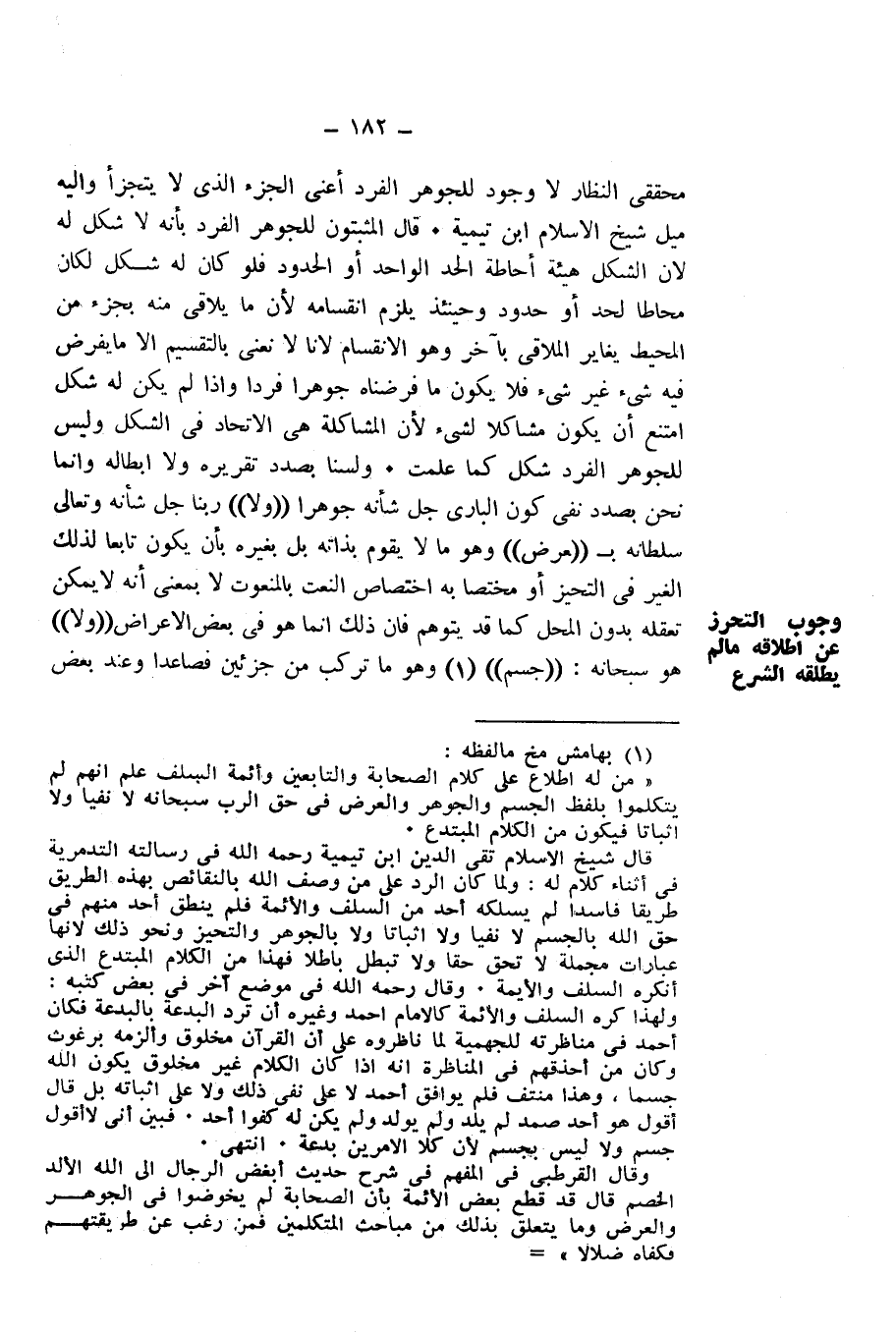 مُحَقِّقِي النُّظَّارِ لَا وُجُودَ لِلْجَوْهَرِ الْفَرْدِ، أَعْنِي الْجُزْءَ الَّذِي لَا يَتَجَزَّأُ، وَإِلَيْهِ مَيْلُ شَيْخِ الْإِسْلَامِ ابْنِ تَيْمِيَّةَ.