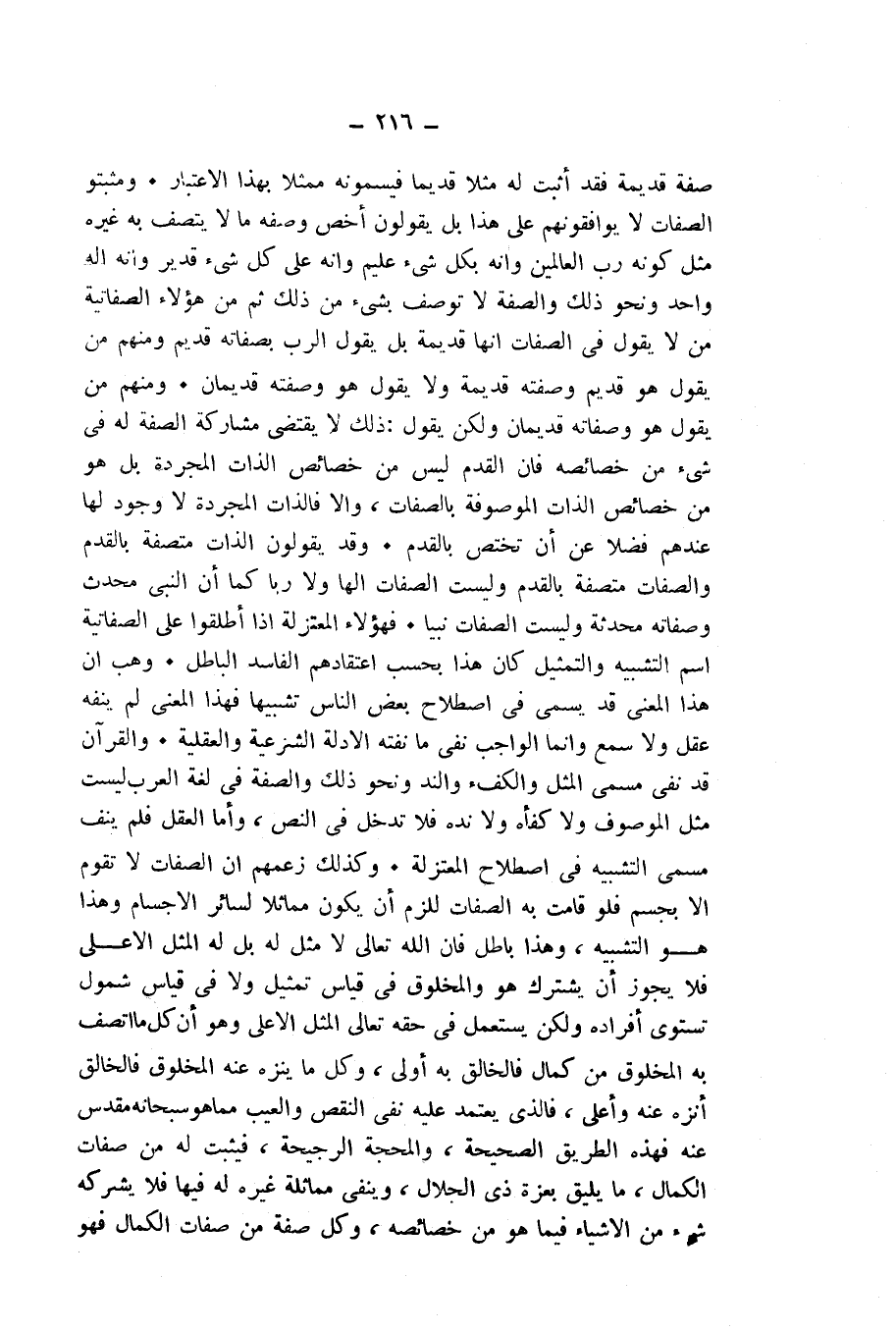 صِفَةً قَدِيمَةً فَقَدْ أَثْبَتَ لَهُ مَثَلًا قَدِيمًا فَيُسَمُّونَهُ مُمَثِّلًا بِهَذَا الِاعْتِبَارِ.