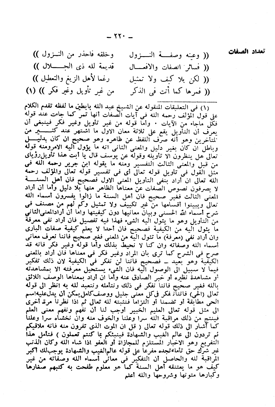 ((فَمُرَّهَا كَمَا أَتَتْ فِي الذِّكْرِ ... مِنْ غَيْرِ تَأْوِيلٍ وَغَيْرِ فِكْرٍ))