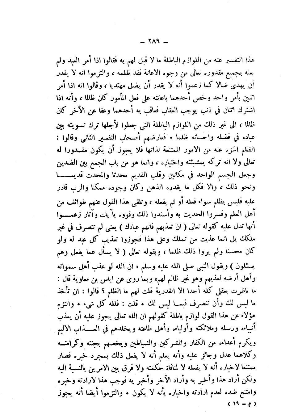 هَذَا التَّفْسِيرِ عَنْهُ مِنَ اللَّوَازِمِ الْبَاطِلَةِ مَا لَا قِبَلَ لَهُمْ بِهِ، فَقَالُوا: إِذَا أَمَرَ الْعَبْدَ وَلَمْ يُعِنْهُ بِجَمِيعِ مَقْدُورِهِ - تَعَالَى - مِنْ وُجُوهِ الْإِعَانَةِ؛ فَقَدْ ظَلَمَهُ، وَالْتَزَمُوا أَنَّهُ لَا يَقْدِرُ أَنْ يَهْدِيَ ضَالًّا كَمَا زَعَمُوا أَنَّهُ لَا يَقْدِرُ أَنْ يُضِلَّ مُهْتَدِيًا، وَقَالُوا: إِنَّهُ إِذَا أَمَرَ اثْنَيْنِ بِأَمْرٍ وَاحِدٍ، وَخَصَّ أَحَدَهُمَا بِإِعَانَتِهِ عَلَى فِعْلِ الْمَأْمُورِ؛ كَانَ ظَالِمًا، وَإِنَّهُ إِذَا اشْتَرَكَ اثْنَانِ فِي ذَنْبٍ يُوجِبُ الْعِقَابَ فَعَاقَبَ أَحَدَهُمَا وَعَفَا عَنِ الْآخَرِ؛ كَانَ ظَالِمًا، إِلَى غَيْرِ ذَلِكَ مِنَ اللَّوَازِمِ الْبَاطِلَةِ الَّتِي جَعَلُوا لِأَجْلِهَا تَرْكَ تَسْوِيَتِهِ بَيْنَ عِبَادِهِ فِي فَضْلِهِ وَإِحْسَانِهِ ظُلْمًا.