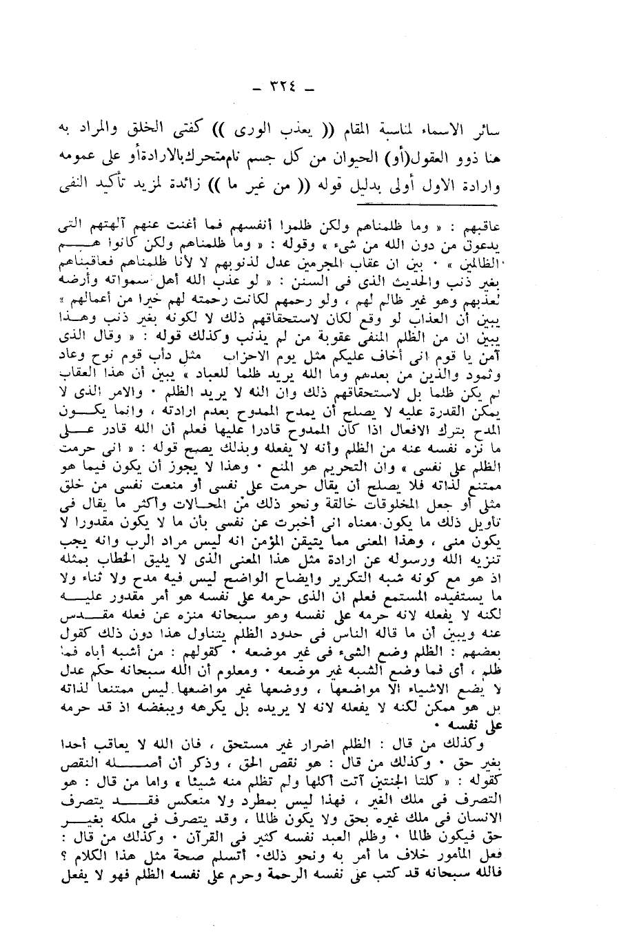 سَائِرِ الْأَسْمَاءِ لِمُنَاسَبَةِ الْمَقَامِ ((يُعَذِّبُ الْوَرَى)) كَفَتَى، الْخَلْقُ، وَالْمُرَادُ بِهِ هُنَا ذَوُو الْعُقُولِ ((أَوِ)) الْحَيَوَانُ مِنْ كُلِّ جِسْمٍ نَامٍ مُتَحَرِّكٍ بِالْإِرَادَةِ، أَوْ عَلَى عُمُومِهِ، وَإِرَادَةُ الْأَوَّلِ أَوْلَى بِدَلِيلِ قَوْلِهِ: ((مِنْ غَيْرِمَا)) زَائِدَةٌ لِمَزِيدِ تَأْكِيدِ النَّفْيِ،