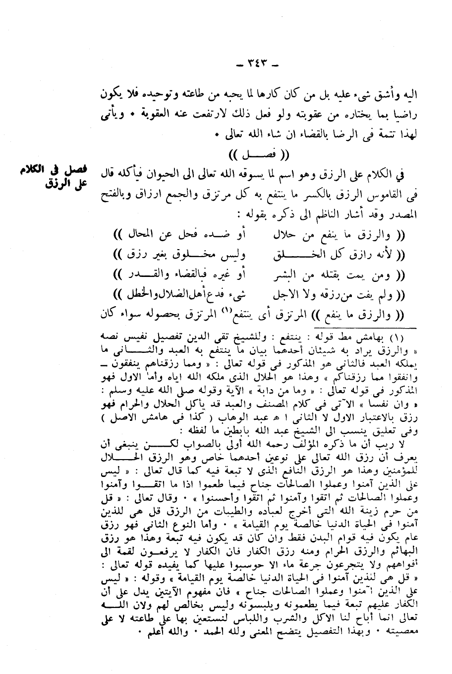 ((وَالرِّزْقُ مَا يَنْفَعُ مِنْ حَلَالِ ... أَوْ ضِدُّهُ فَحُلْ عَنِ الْمُحَالِ))