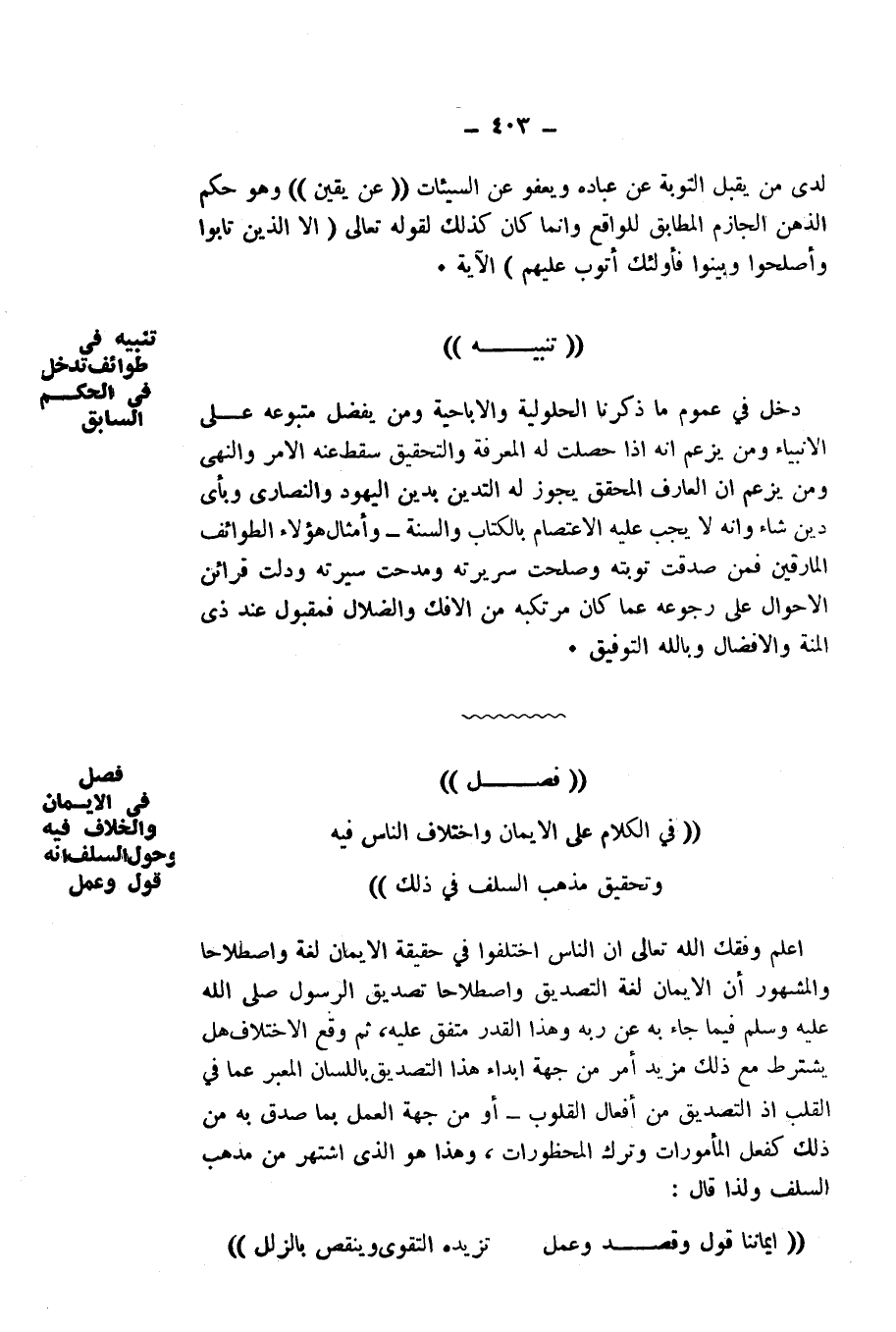 ((فِي الْكَلَامِ عَلَى الْإِيمَانِ وَاخْتِلَافِ النَّاسِ فِيهِ وَتَحْقِيقِ مَذْهَبِ السَّلَفِ فِي ذَلِكَ))