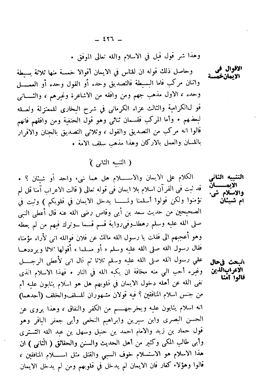 [التنبيه الثاني الإيمان والإسلام شيء واحد أم شيئان]