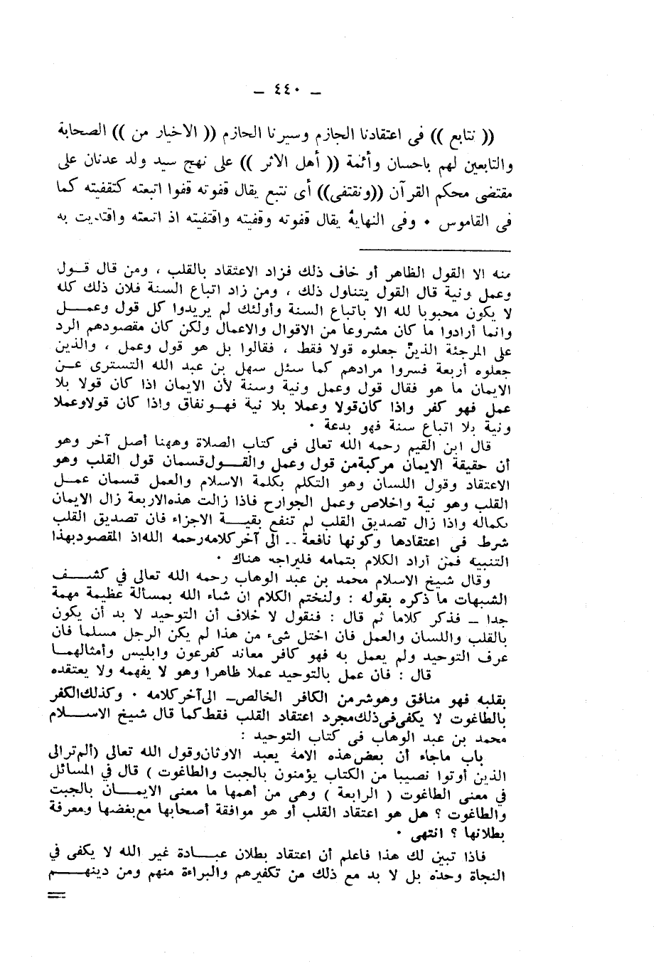 ((نُتَابِعُ)) فِي اعْتِقَادِنَا الْجَازِمِ وَسَيْرِنَا الْحَازِمِ ((الْأَخْيَارَ مِنَ)) الصَّحَابَةِ، وَالتَّابِعِينَ لَهُمْ بِإِحْسَانٍ وَأَئِمَّةِ ((أَهْلِ الْأَثَرِ)) عَلَى نَهْجِ سَيِّدِ وَلَدِ عَدْنَانَ عَلَى مُقْتَضَى مُحْكَمِ الْقُرْآنِ ((وَنَقْتَفِي)) أَيْ نَتَّبِعُ يُقَالُ قَفَوْتُهُ قَفْوًا اتَّبَعْتُهُ كَتَقَفَّيْتُهُ كَمَا فِي الْقَامُوسِ. وَفِي النِّهَايَةِ يُقَالُ قَفَوْتُه وَقَفَّيْتُهُ، وَاقْتَفَيْتُهُ إِذَا تَبِعْتُهُ وَاقْتَدَيْتُ بِهِ