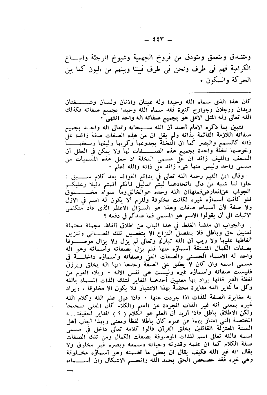 وَمُتَشَدِّقٍ وَمُتَعَمِّقٍ وَمُتَوَدِّقٍ مِنْ فُرُوخِ الْجَهْمِيَّةِ وَشُيُوخِ الْمُرْجِئَةِ وَأَتْبَاعِ الْكَرَّامِيَّةِ فَهُمْ فِي طَرَفٍ، وَنَحْنُ فِي طَرَفٍ فَبَيْنَنَا وَبَيْنَهُمْ مِنَ الْبَوْنِ كَمَا بَيْنَ الْحَرَكَةِ، وَالسُّكُونِ.
