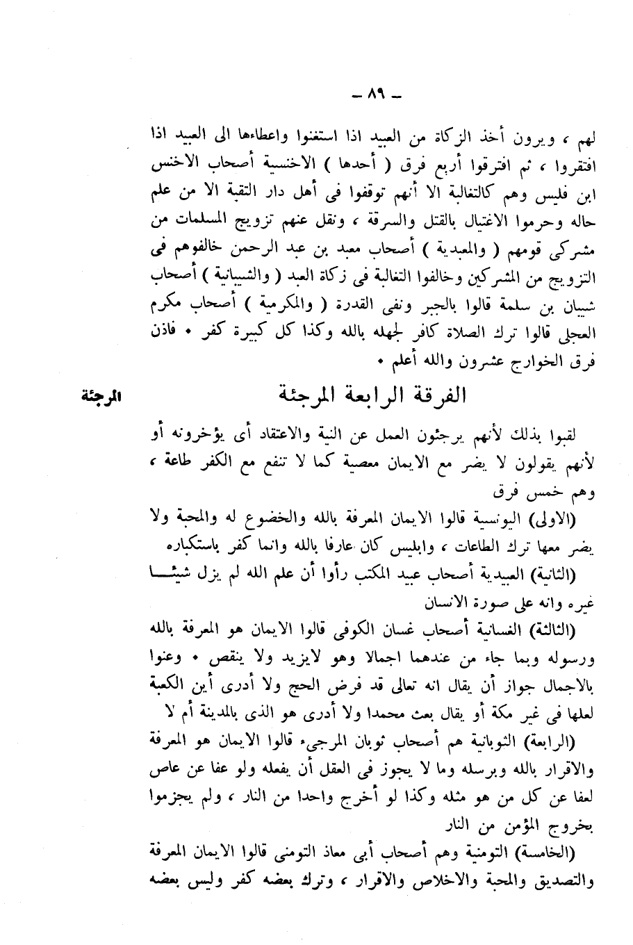 الْفِرْقَةُ الرَّابِعَةُ الْمُرْجِئَةُ