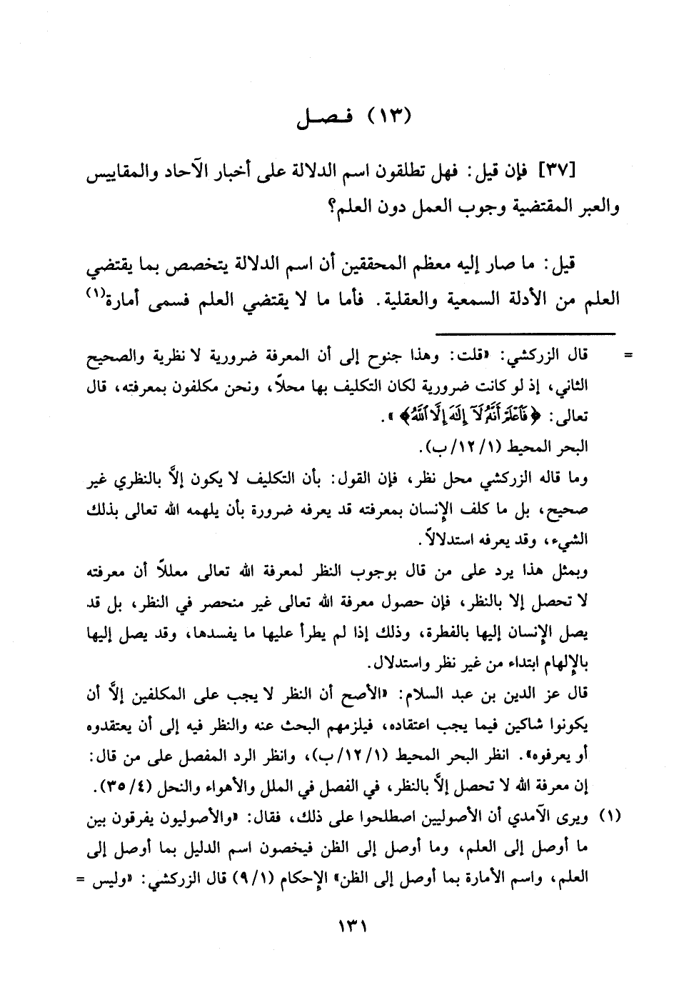 [37] فَإِن قيل: فَهَل تطلقون اسْم الدّلَالَة على أَخْبَار الْآحَاد والمقاييس والعبر الْمُقْتَضِيَة وجوب الْعَمَل دون الْعلم؟