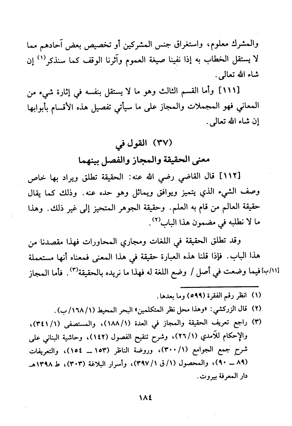 (37) القَوْل فِي معنى الْحَقِيقَة وَالْمجَاز والفصل بَينهمَا