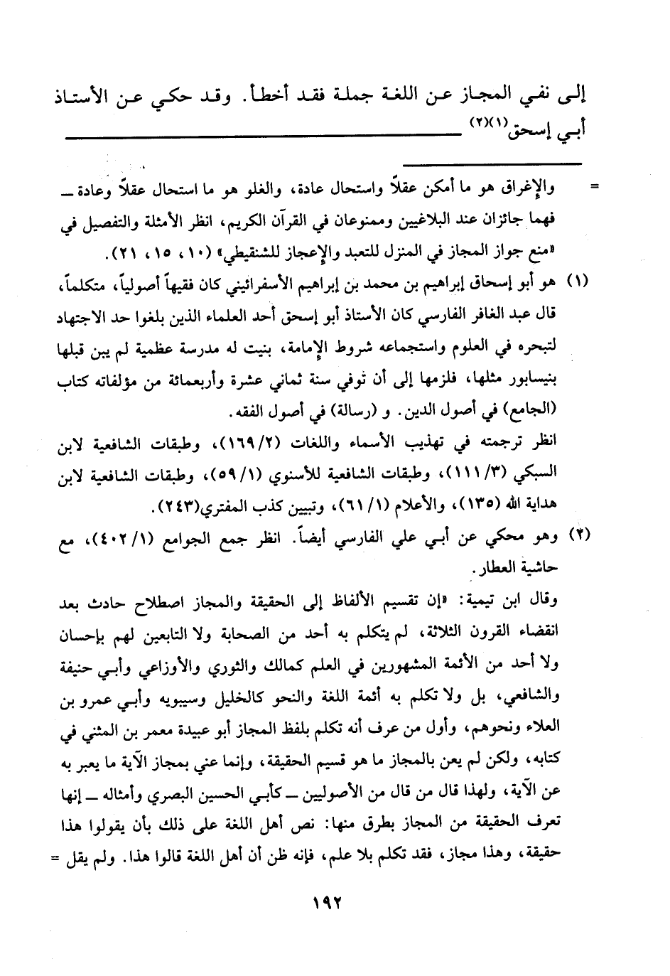 إِلَى نفي الْمجَاز عَن اللُّغَة جملَة فقد أَخطَأ. وَقد حُكيَ عَن الْأُسْتَاذ أبي إِسْحَق