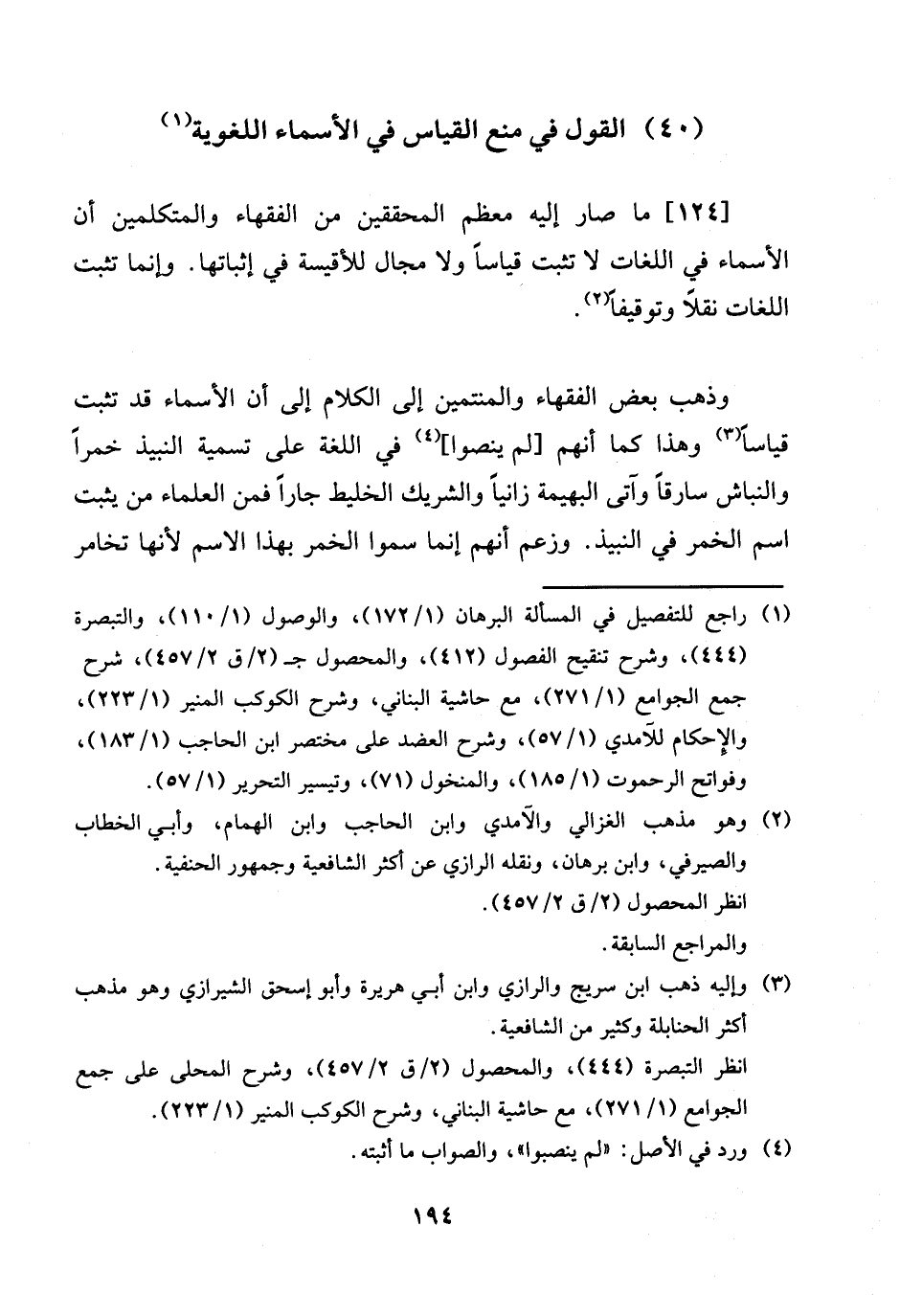 (40) القَوْل فِي منع الْقيَاس فِي الْأَسْمَاء اللُّغَوِيَّة