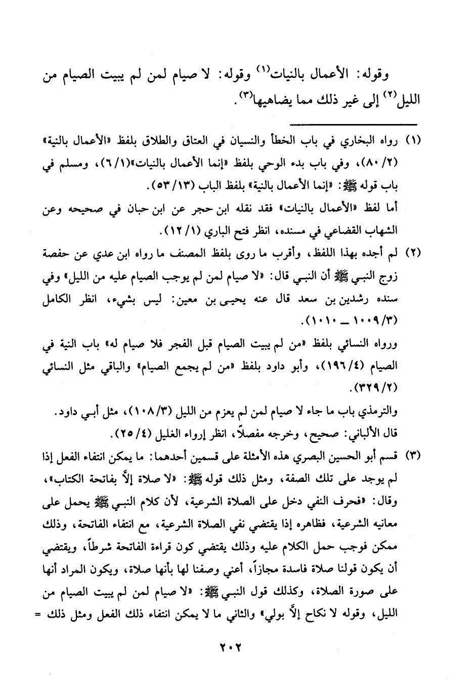 وَقَوله: الْأَعْمَال بِالنِّيَّاتِ وَقَوله: لَا صِيَام لمن لم يبيت الصّيام من اللَّيْل إِلَى غير ذَلِك مِمَّا يضاهيها.