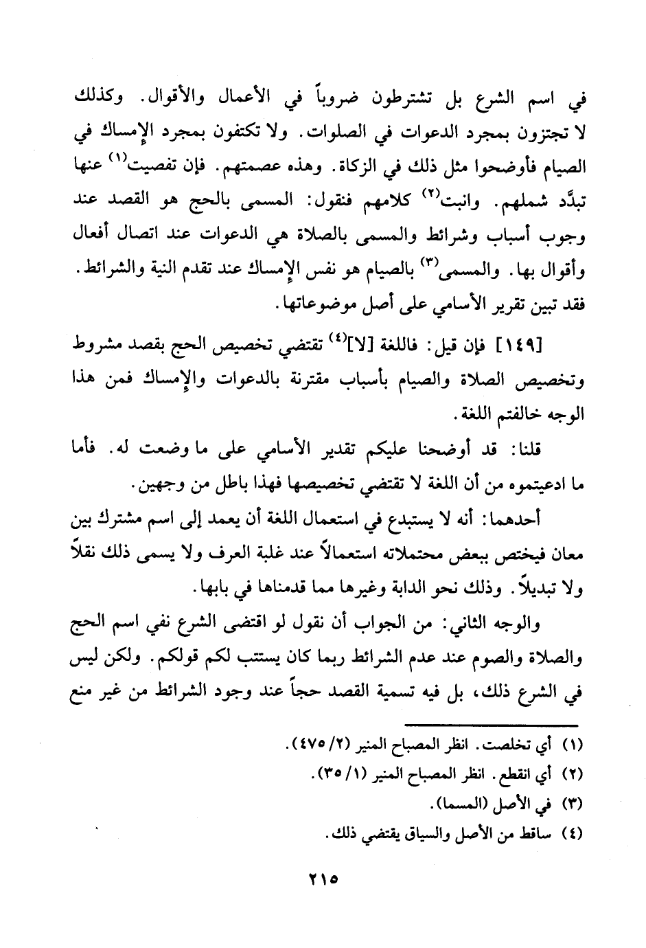 [149] فَإِن قيل: فاللغة [لَا] تَقْتَضِي تَخْصِيص الْحَج بِقصد مَشْرُوط وَتَخْصِيص الصَّلَاة وَالصِّيَام بِأَسْبَاب مقترنة بالدعوات والإمساك فَمن هَذَا الْوَجْه خالفتم اللُّغَة.