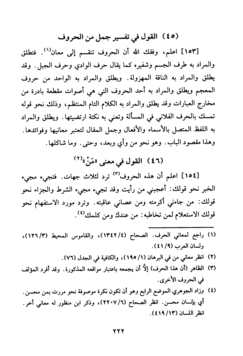 (45) القَوْل فِي تَفْسِير جمل من الْحُرُوف