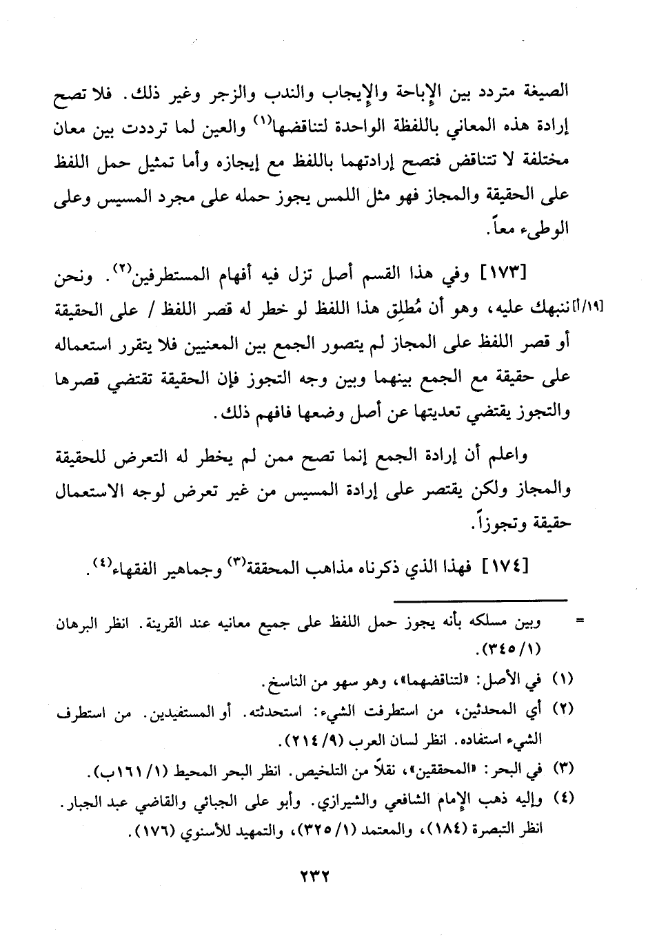 وَاعْلَم أَن إِرَادَة الْجمع إِنَّمَا تصح مِمَّن لم يخْطر لَهُ التَّعَرُّض للْحَقِيقَة وَالْمجَاز وَلَكِن يقْتَصر على إِرَادَة الْمَسِيس من غير تعرض لوجه الِاسْتِعْمَال حَقِيقَة وتجوزا. [174] فَهَذَا الَّذِي ذَكرْنَاهُ مَذَاهِب المحققة وجماهير الْفُقَهَاء؟