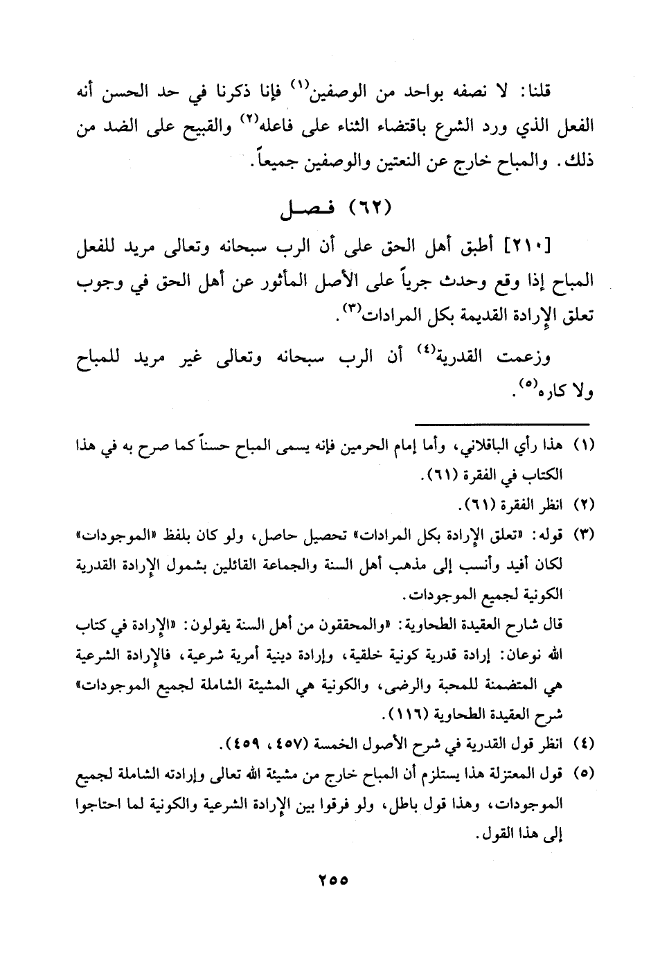 [210] أطبق أهل الْحق على أَن الرب سُبْحَانَهُ وَتَعَالَى مُرِيد للْفِعْل الْمُبَاح إِذا وَقع وَحدث جَريا على الأَصْل الْمَأْثُور عَن أهل الْحق فِي وجوب تعلق الْإِرَادَة الْقَدِيمَة بِكُل المرادات.