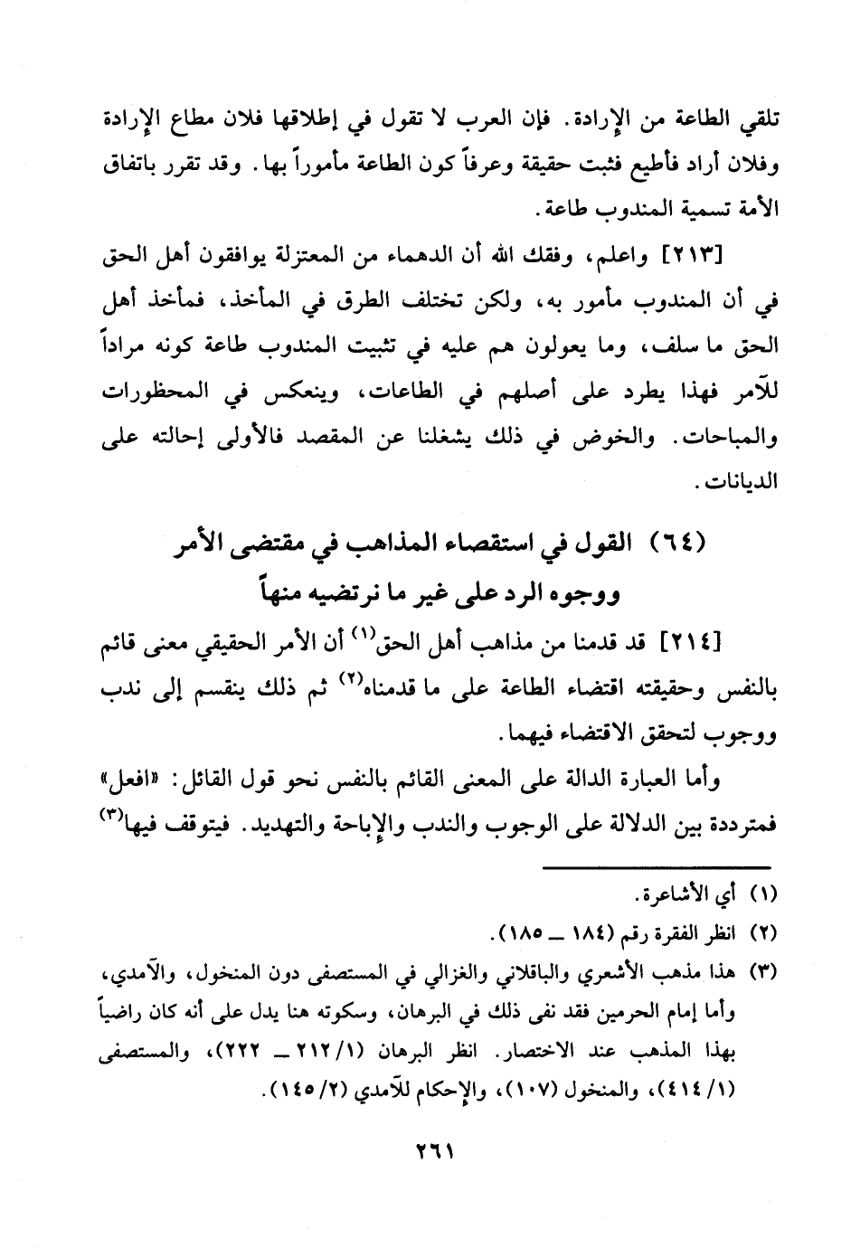 (64) القَوْل فِي استقصاء الْمذَاهب فِي مُقْتَضى الْأَمر ووجوه الرَّد على غير مَا نرتضيه مِنْهَا