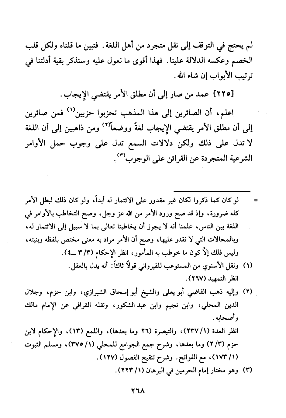 [225] عمد من صَار إِلَى أَن مُطلق الْأَمر يَقْتَضِي الْإِيجَاب.