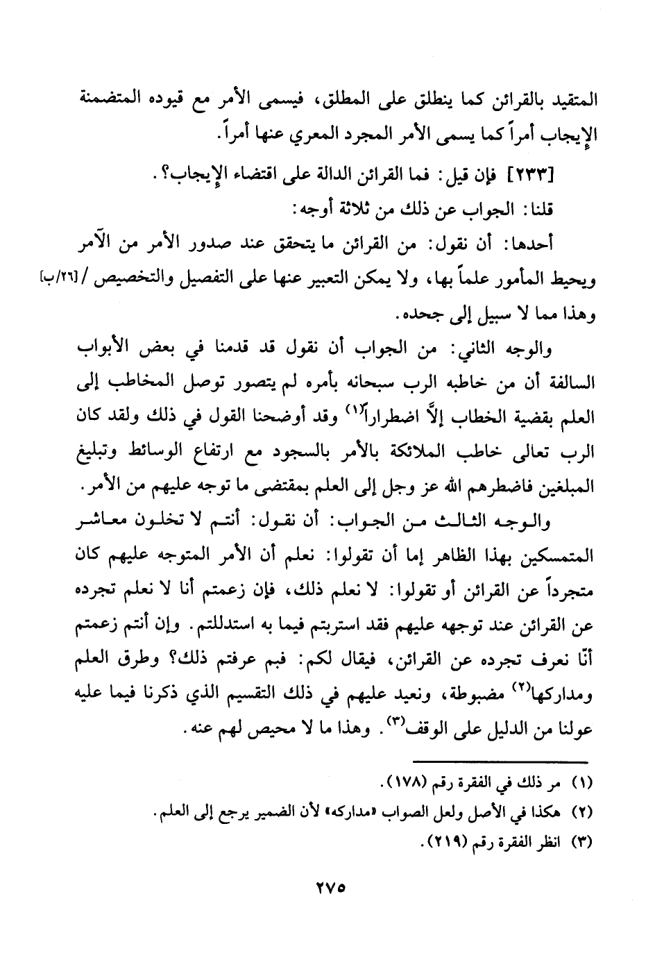[233] فَإِن قيل: فَمَا الْقَرَائِن الدَّالَّة على اقْتِضَاء الْإِيجَاب؟
