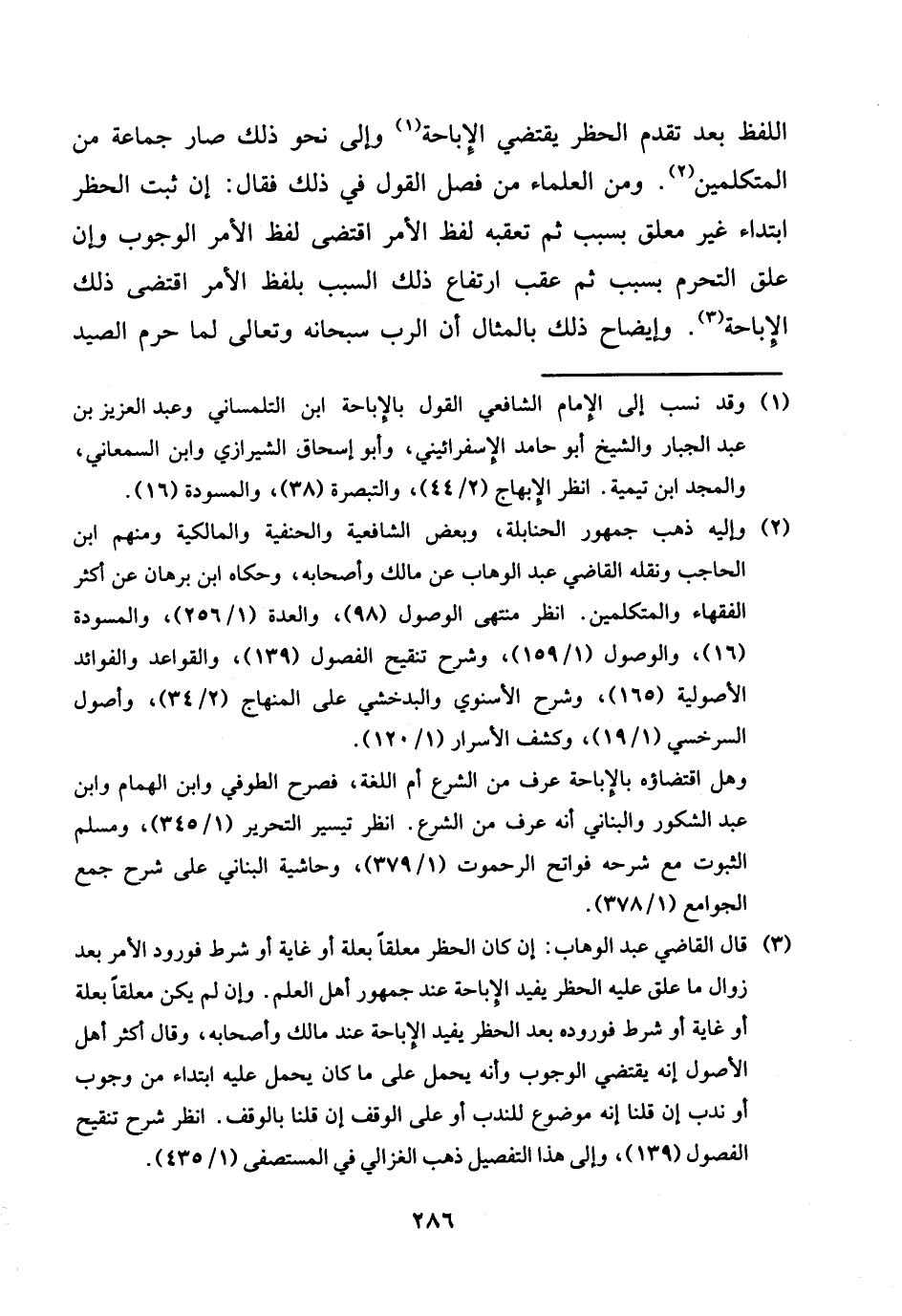 اللَّفْظ بعد تقدم الْحَظْر يَقْتَضِي الْإِبَاحَة وَإِلَى نَحْو ذَلِك صَار جمَاعَة من الْمُتَكَلِّمين وَمن الْعلمَاء من فصل القَوْل فِي ذَلِك فَقَالَ: إِن ثَبت الْحَظْر ابْتِدَاء غير مُعَلّق بِسَبَب ثمَّ تعقبه لفظ الْأَمر اقْتضى لفظ الْأَمر الْوُجُوب وَإِن علق التَّحَرُّم بِسَبَب ثمَّ عقب ارْتِفَاع ذَلِك السَّبَب بِلَفْظ الْأَمر اقْتضى ذَلِك الْإِبَاحَة. وإيضاح ذَلِك بالمثال أَن الرب سُبْحَانَهُ وَتَعَالَى لما حرم الصَّيْد