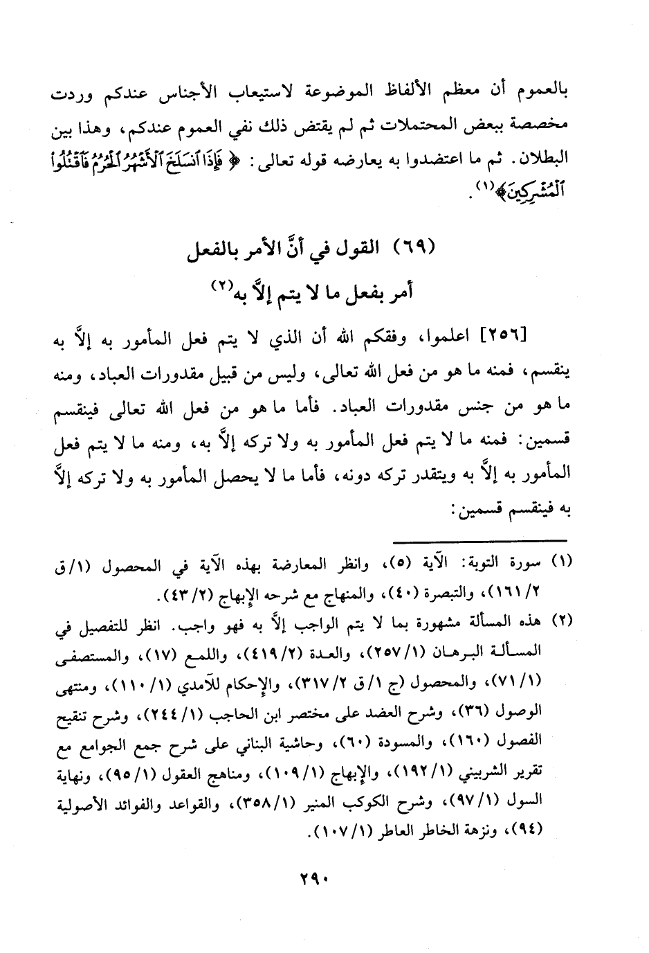 [256] اعلموا، وفقكم الله أَن الَّذِي لَا يتم فعل الْمَأْمُور بِهِ إِلَّا بِهِ يَنْقَسِم، فَمِنْهُ مَا هُوَ من فعل الله تَعَالَى، وَلَيْسَ من قبيل مقدورات الْعباد، وَمِنْه مَا هُوَ من جنس مقدورات الْعباد. فَأَما مَا هُوَ من فعل الله تَعَالَى فينقسم قسمَيْنِ: فَمِنْهُ مَا لَا يتم فعل الْمَأْمُور بِهِ وَلَا تَركه إِلَّا بِهِ، وَمِنْه مَا لَا يتم فعل الْمَأْمُور بِهِ إِلَّا بِهِ ويتقدر تَركه دونه، فَأَما مَا لَا يحصل الْمَأْمُور بِهِ وَلَا تَركه إِلَّا بِهِ فينقسم قسمَيْنِ: