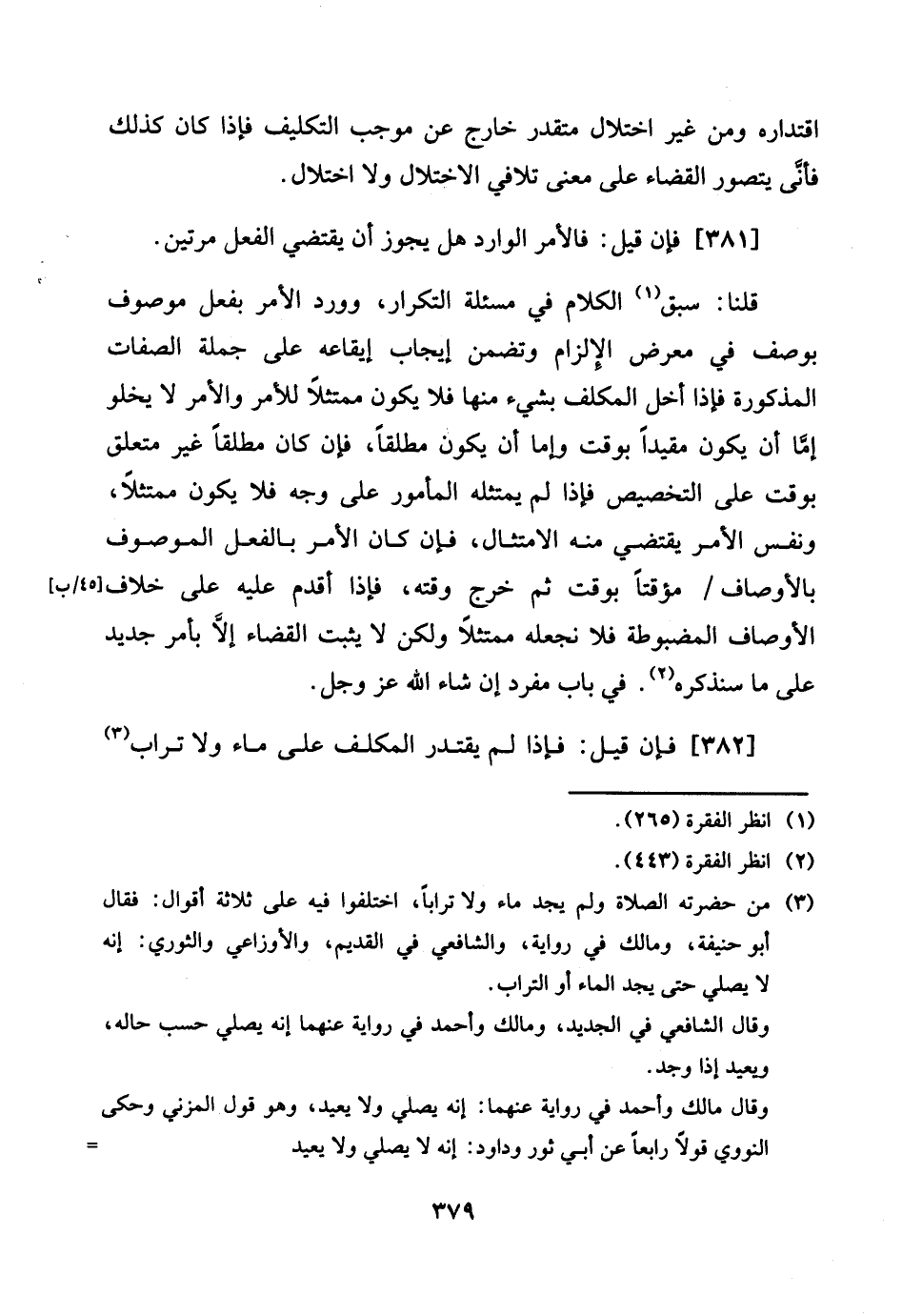 [381] فَإِن قيل: فَالْأَمْر الْوَارِد هَل يجوز أَن يَقْتَضِي الْفِعْل مرَّتَيْنِ.