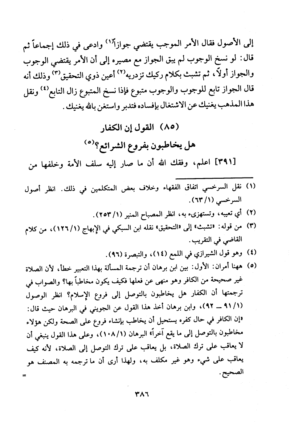 (85) القَوْل إِن الْكفَّار هَل يخاطبون بِفُرُوع الشَّرَائِع؟