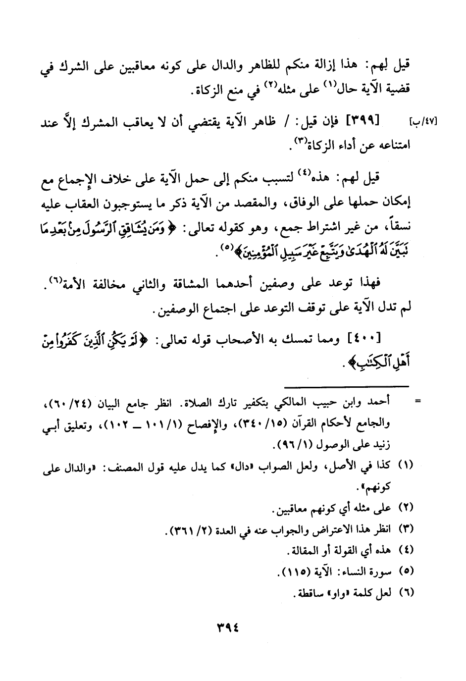 [47 / ب] [399] فَإِن قيل: / ظَاهر الْآيَة يَقْتَضِي أَن لَا يُعَاقب الْمُشرك إِلَّا عِنْد امْتِنَاعه عَن أَدَاء الزَّكَاة.