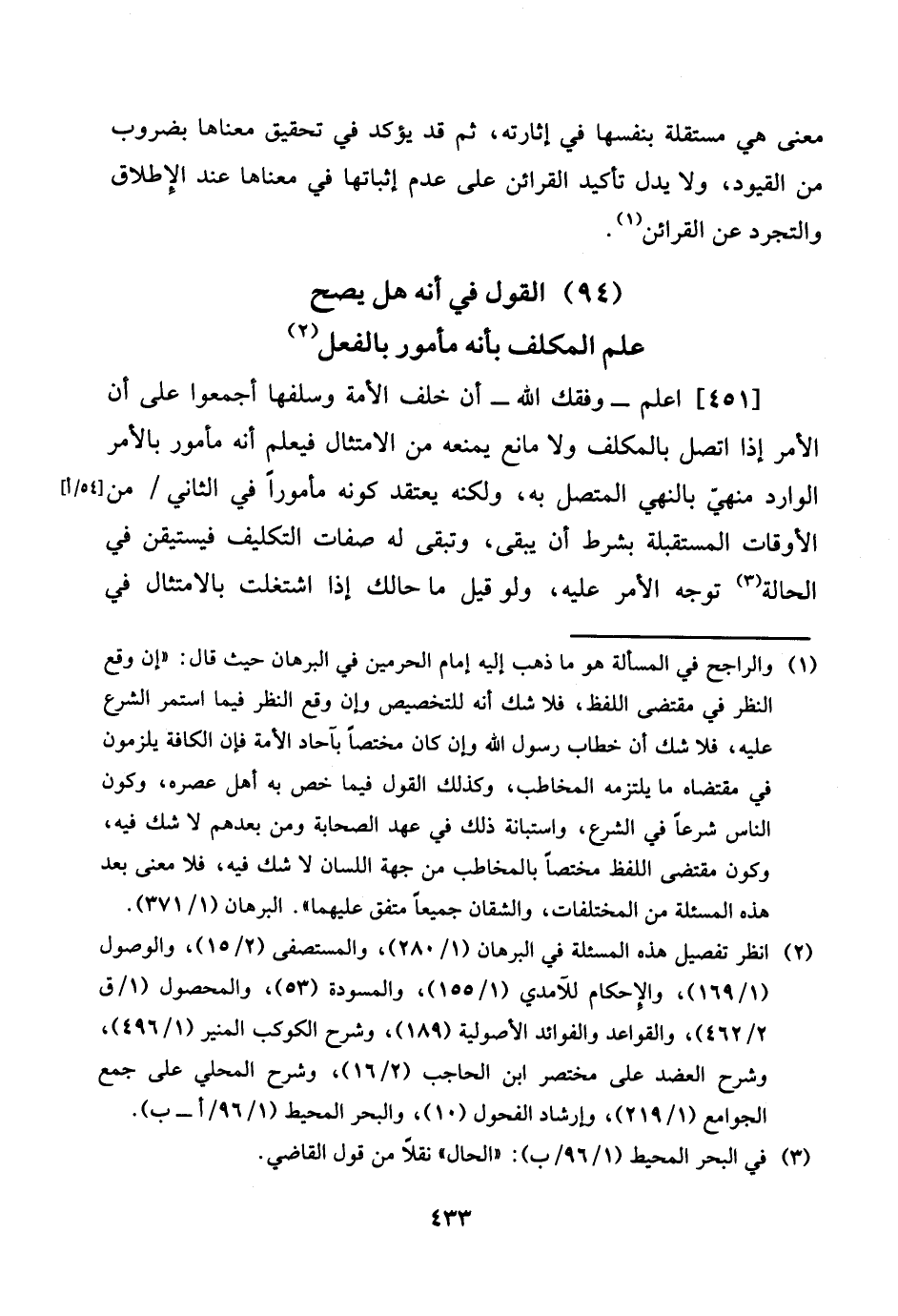 (94) القَوْل فِي أَنه هَل يَصح علم الْمُكَلف بِأَنَّهُ مَأْمُور بِالْفِعْلِ