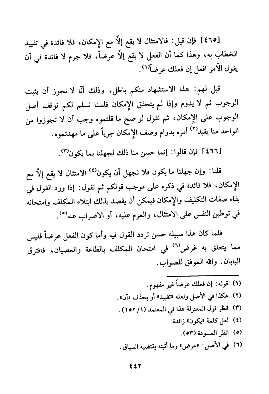 فَلَمَّا كَانَ هَذَا سَبيله حسن تردد القَوْل فِيهِ وَأما كَون الْفِعْل عرضا فَلَيْسَ مِمَّا يتَعَلَّق بِهِ غَرَض فِي امتحان الْمُكَلف بِالطَّاعَةِ والعصيان، فافترق البابان. وَالله الْمُوفق للصَّوَاب.