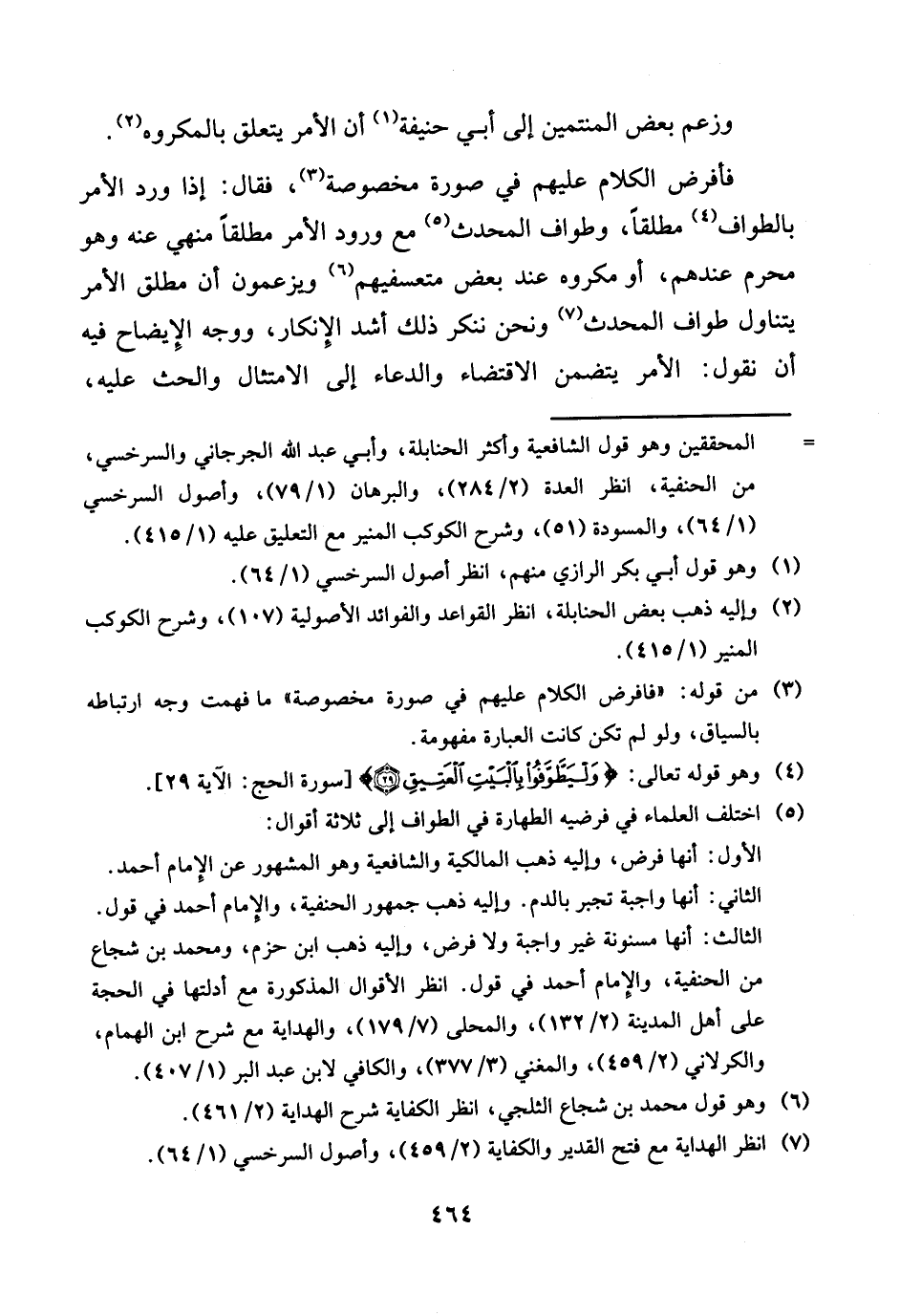 فأفرض الْكَلَام عَلَيْهِم فِي صُورَة مَخْصُوصَة، فَقَالَ: إِذا ورد الْأَمر بِالطّوافِ مُطلقًا، وَطواف الْمُحدث مَعَ وُرُود الْأَمر مُطلقًا مَنْهِيّ عَنهُ وَهُوَ محرم عِنْدهم، أَو مَكْرُوه عِنْد بعض متعسفيهم ويزعمون أَن مُطلق الْأَمر يتَنَاوَل طواف الْمُحدث وَنحن ننكر ذَلِك أَشد الْإِنْكَار، وَوجه الْإِيضَاح فِيهِ أَن نقُول: الْأَمر يتَضَمَّن الِاقْتِضَاء وَالدُّعَاء إِلَى الِامْتِثَال والحث عَلَيْهِ،