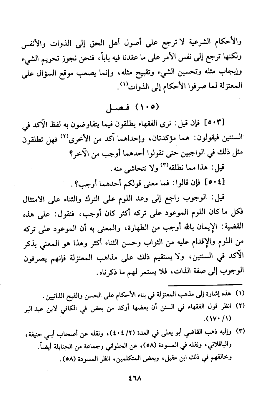 [503] فَإِن قيل: نرى الْفُقَهَاء يطلقون فِيمَا يتفاوضون بِهِ لفظ الآكد فِي السنتين فَيَقُولُونَ: هما مؤكدتان، وإحداهما آكِد من الْأُخْرَى فَهَل تطلقون مثل ذَلِك فِي الواجبين حَتَّى تَقولُوا أَحدهمَا أوجب من الآخر؟ .
