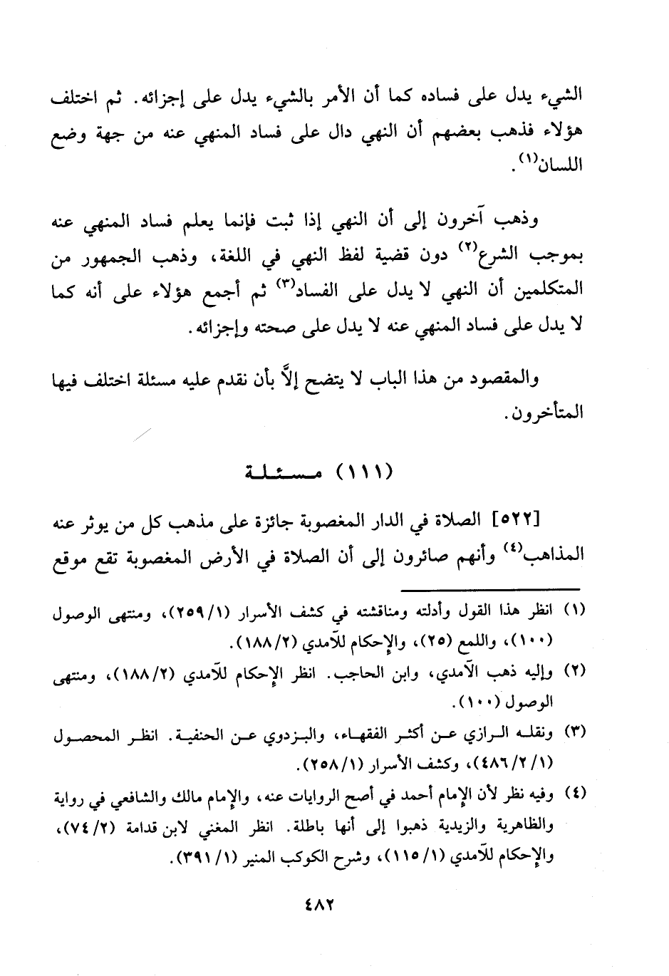 [522] الصَّلَاة فِي الدَّار الْمَغْصُوبَة جَائِزَة على مَذْهَب كل من يُؤثر عَنهُ الْمذَاهب وَأَنَّهُمْ صائرون إِلَى أَن الصَّلَاة فِي الأَرْض الْمَغْصُوبَة تقع موقع