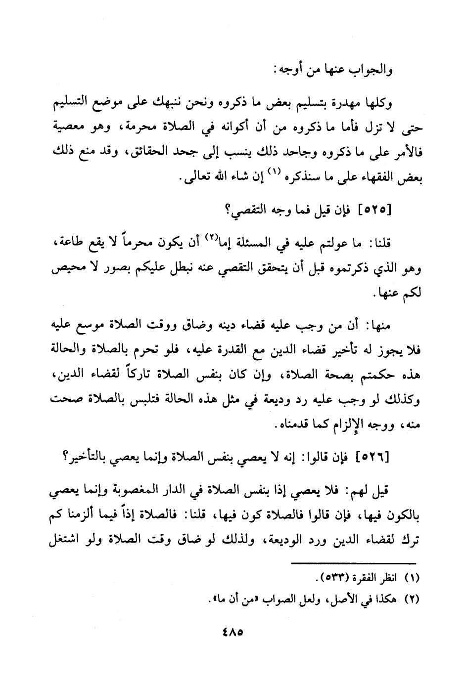 [526] فَإِن قَالُوا: إِنَّه لَا يَعْصِي بِنَفس الصَّلَاة وَإِنَّمَا يَعْصِي بِالتَّأْخِيرِ؟ .