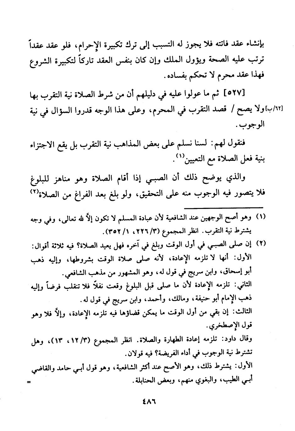 [527] ثمَّ مَا عولوا عَلَيْهِ فِي دليلهم أَن من شَرط الصَّلَاة نِيَّة التَّقَرُّب بهَا [62 / ب] وَلَا يَصح / قصد التَّقَرُّب فِي الْمحرم، وعَلى هَذَا الْوَجْه قدرُوا السُّؤَال فِي نِيَّة الْوُجُوب.