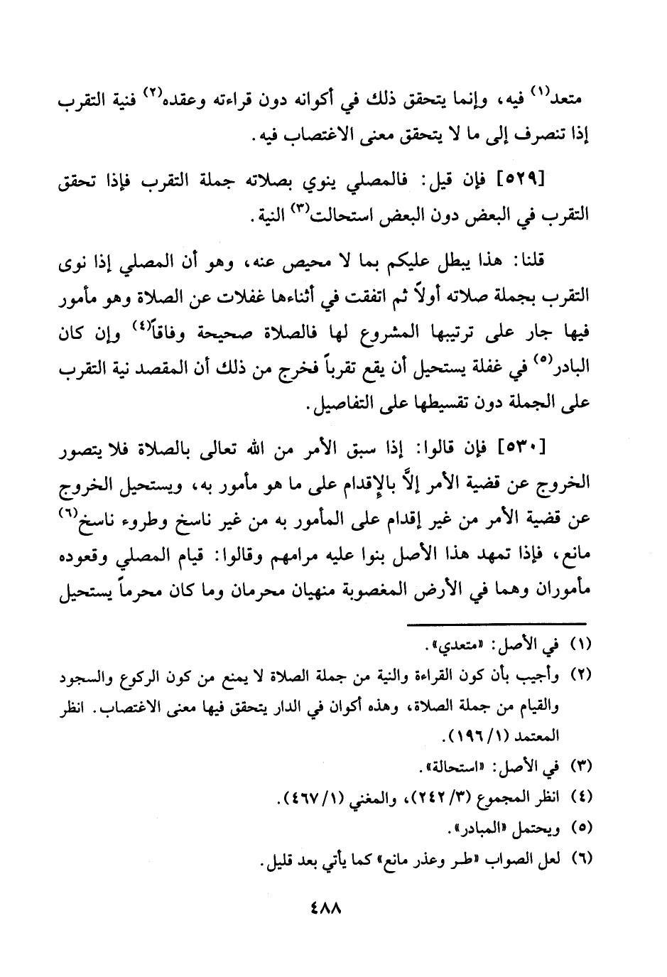 [529] فَإِن قيل: فالمصلي يَنْوِي بِصَلَاتِهِ جملَة التَّقَرُّب فَإِذا تحقق التَّقَرُّب فِي الْبَعْض دون الْبَعْض استحالت النِّيَّة.