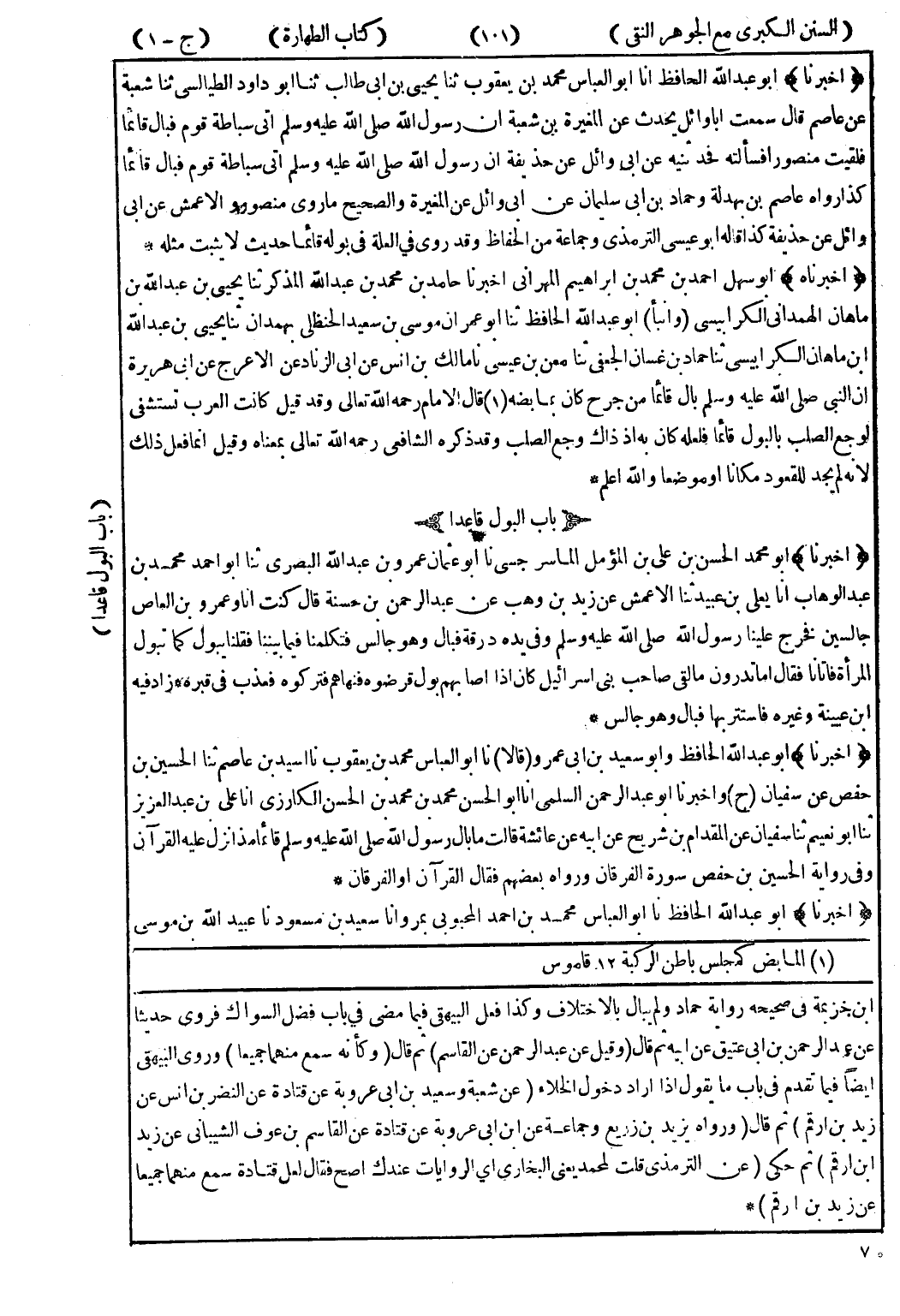 ابن خزيمة في سحيحه رواية حماد ولم يبال بالاختلاف وكذا فعل البيهقى فيما مضى في باب فضل السواك فروى حديثا عن عبد الرحمن بن ابى عتيق عن ابيه ثم قال (وقيل عن عبد الرحمن عن القاسم) ثم قال (وكأنه سمع منهما جميعا) وروى البيهقى ايضا فيما تقدم في باب ما يقول إذا اراد دخول الخلاء (عن شعبة وسعيد بن ابى عروبة عن قتادة عن النضر بن انس عن زيد بن ارقم) ثم قال (ورواه يزيد بن زريع وجماعة عن ابن ابى عروبة عن قتادة عن القاسم بن عوف الشيباني عن زيد ابن ارقم) ثم حكى (عن الترمذي لمحمد يعنى البخاري اي الروايات عندك اصح فقال لعل قتادة سمع منهما جميعا عن زيد بن ارقم) *