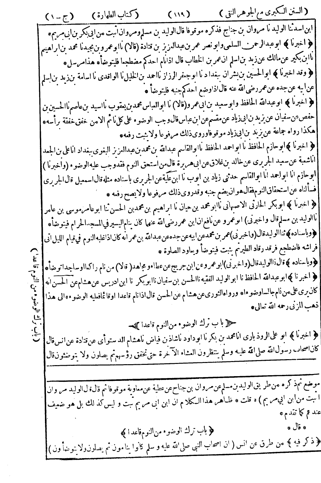 موضع ثم ذكره من طريق الوليد بن مسلم عن مروان بن جناح عن عطية عن معاوية موقوفا ثم قال قال الوليد مروان اثبت من ابن ابى مريم * قلت * ظاهر هذا الكلام ان ابن ابى مريم ثبت وليس كذلك بل هو ضعيف عندهم كما تقدم * * قال * (باب ترك الوضوء من النوم قاعدا) (ذكر فيه) من طرق عن انس (ان اصحاب النبي صلى الله عليه وسلم كانوا ينامون ثم يصلون ولا يتوضأون)