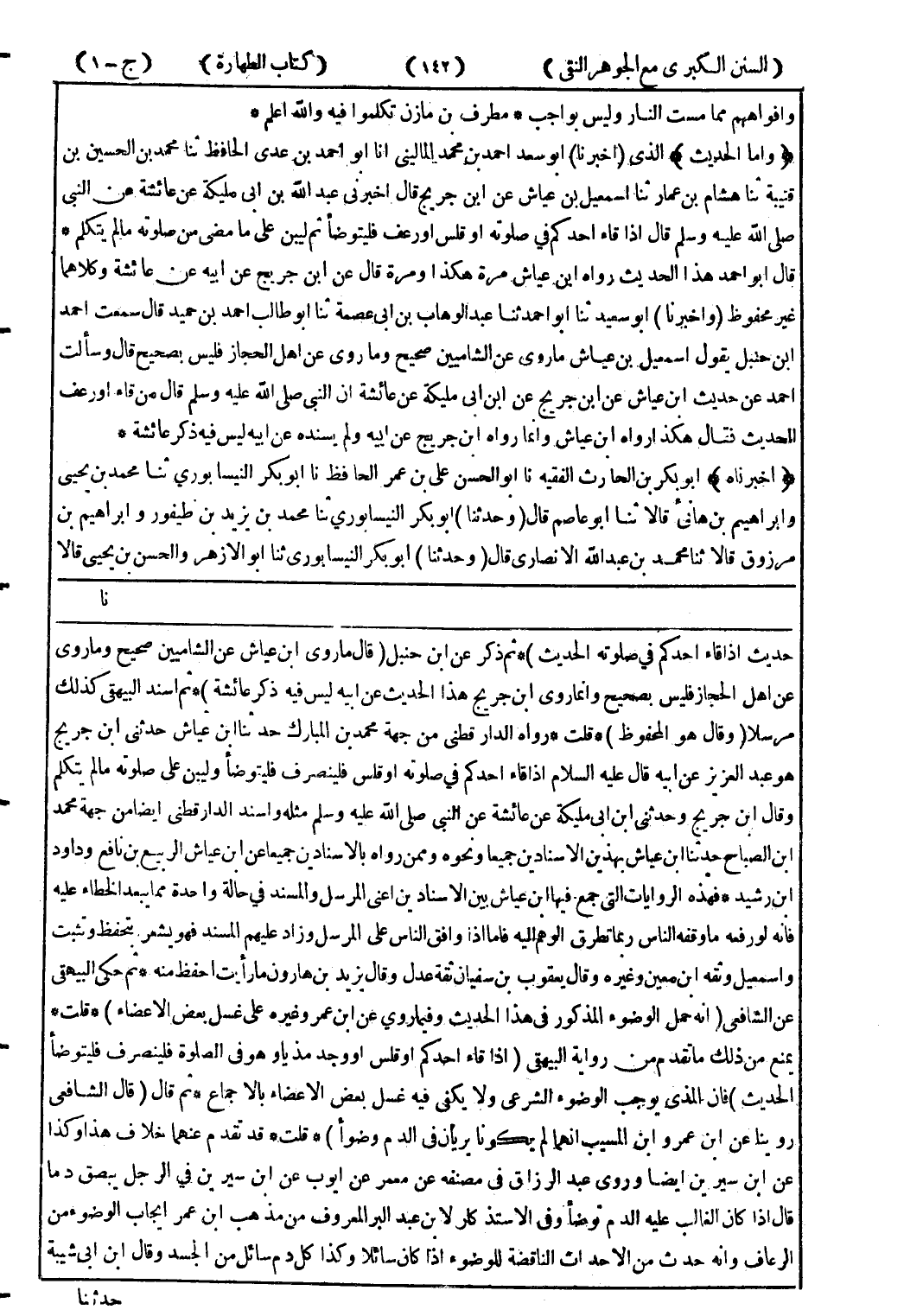 حديث إذا قال ءاحدكم في صلوته الحديث) * ثم ذكر عن ابن حنبل (قال ماروى ابن عياش عن الشاميين صحيح ماروى عن اهل الحجاز فليس بصحيح وانما روى ابن جريج هذا الحديث عن ابيه ليس فيه ذكر عائشة) * ثم اسند البيهقى كذلك مرسلا (وقال هو المحفوظ) * قلت * رواه الدارقطني من جهة محمد بن المبارك حدثنا ابن عياش حدثنى ابن جريج هو عبد العزيز عن ابيه قال عليه السلام إذا قاء احدكم في صلوته اوقلس فلينصرف فليتوضأ وليبن على صلوته ما لم يتلكم وقال ابن جرجى وحدثني ابن ابى مليكة عن عائشة عن النبي صلى الله عليه وسلم مثله واسند الدارقطني ايضا من جهة محمد ابن الصابح حدثنا ابن عياش بهذين الاسناد ين جميعا ونحوه وممن رواه بالاسناد جميعا عن ابن عياش الربيع بن نافع وداود ابن رشيد * فهذا الروايات التى جميع فيها ابن عياش بين الاسنادين اعني المرسل والمسند في حالة واحدة مما يبعد الخطاء عليه فانه لو رفعه ما وقفه الناس تطرق الوهم إليه فاما إذا وافق النا سعلى المرسل وزاد عليهم المسند فهو يشعر بتحفظ وتثبت واسمعيل وثقه ابن معين وغيره وقال يعقوب بن سفيان ثقة عدل وقال يزيد بن هارون ما رأيت احفظ منه * ثم حكى البيهقى عن الشافعي (انه حمل الوضوء المذكور في هذا الحديث وفيما روي عن ابين عمر وغيره على غسل بعض الاعضاء) * قلت * يمنع من ذلك ما تقدم من رواية البيهقى (إذا قاء احدكم أو قلس أو وجد مذياو هو في الصلوة فلينصرف فيتوضأ الحديث) فان الذى يوجب الوضوء الشرعي ولا يكفى فيه غسل بعض الاعضاء بالاجماع * ثم قال (قال الشافعي روينا عن ابن عمرو ابن المسيب انهما لم يكونا يريان في الدم وضوأ) * قلت * قد تقدم عنهما خلاف هذا وكذا عن ابن سير ين ايضا وروى عبد الرزقا في مصنفه عن معمر عن ايوب عن ابن سير ين في الرجل يبصق دما قال إذا كان الغالب عليه الدم توضأ وفى الاسنذكار لابن عبد البر المعروف من مذهب ابن عمر ايجاب الوضوء من الرعاف وانه حدث من الاحداث الناقضة للوضوء إذا كان سائلا وكذا كل دم سائل من الجسد وقالا بن ابى شيبة