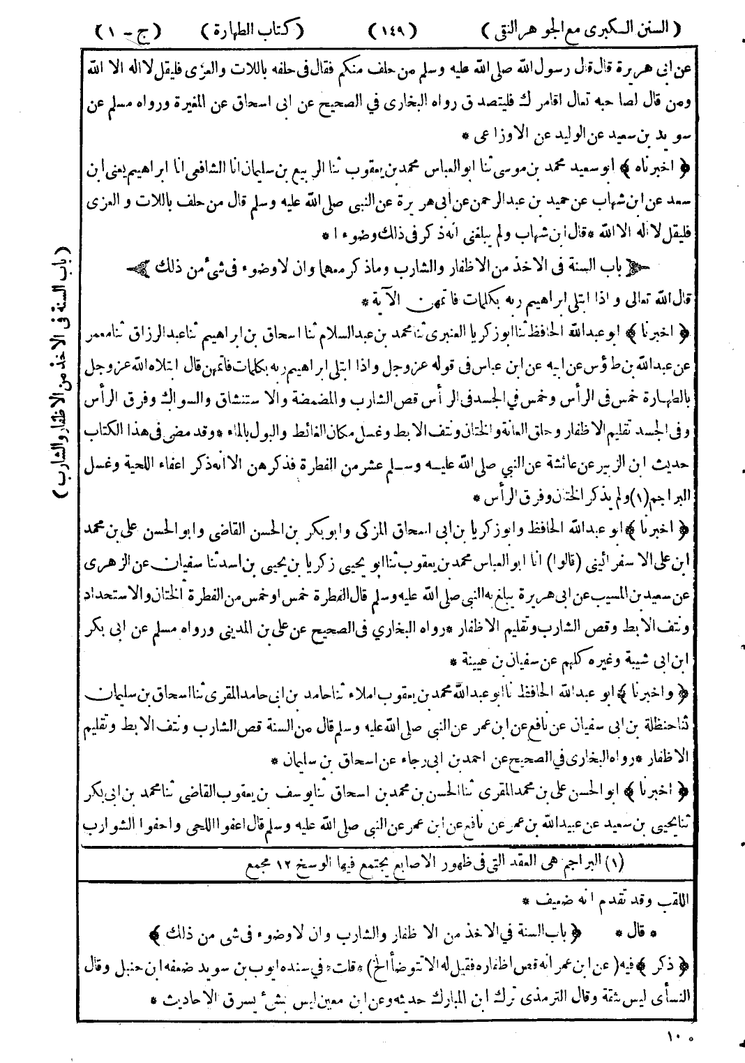 اللقب وقد تقدم انه ضعيف * * قال * (باب النسة في الاخذ من الاظفار والشارب وان لا وضوء في شى من ذلك) (ذكر) فيه (عن ابن عمر انه قص اظفاره فقى له الا تتوضأ الخ) * قلت * في سنده ايوب بن سويد ضعفه ابن حنبل وقال النسأى ليس ثقة وقال الترمذي ترك ابن المبارك حديثه وعن ابن معين ليس بشئ يسرق الاحاديث *