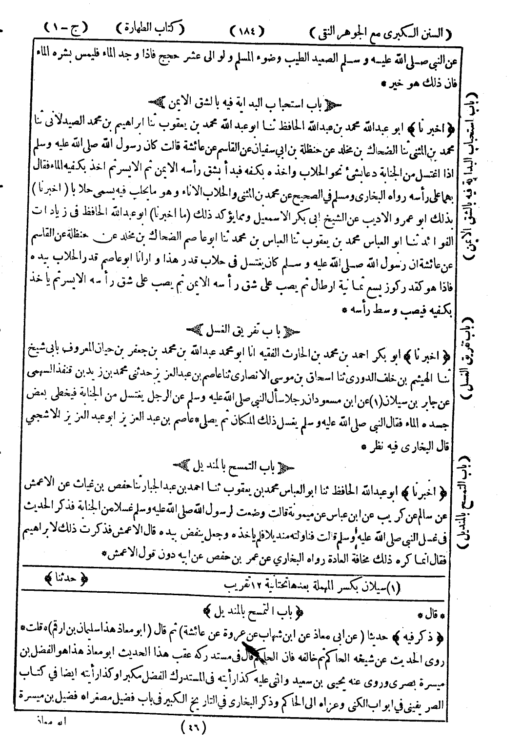 * قال * (باب التمسح بالمنديل) (ذكر فيه) حديثا (عن ابن معاذ عن ابن شهاب عن عروة عن عائشة) ثم قال (أبو معاذ هذا سليمان بن ارقم) * قلت روى الحديث عن شيخه الحاكم ثم خالفه فان الحاكم قال في مستدركه عقب هذا الحديث أبو معاذ هذا هو الفضل بن ميسرة بصرى وروى عنه يحيى بن سعيد واثنى عليه كذا رأيته في المستدرك الفضل مكبروا وكذا رأيته ايضا في كتاب الصريفينى في ابواب الكنى وعزاه إلى الحاكم وذكر البخاري في التاريخ الكبير في باب فضيل مصغرا * فضيل بن ميسرة